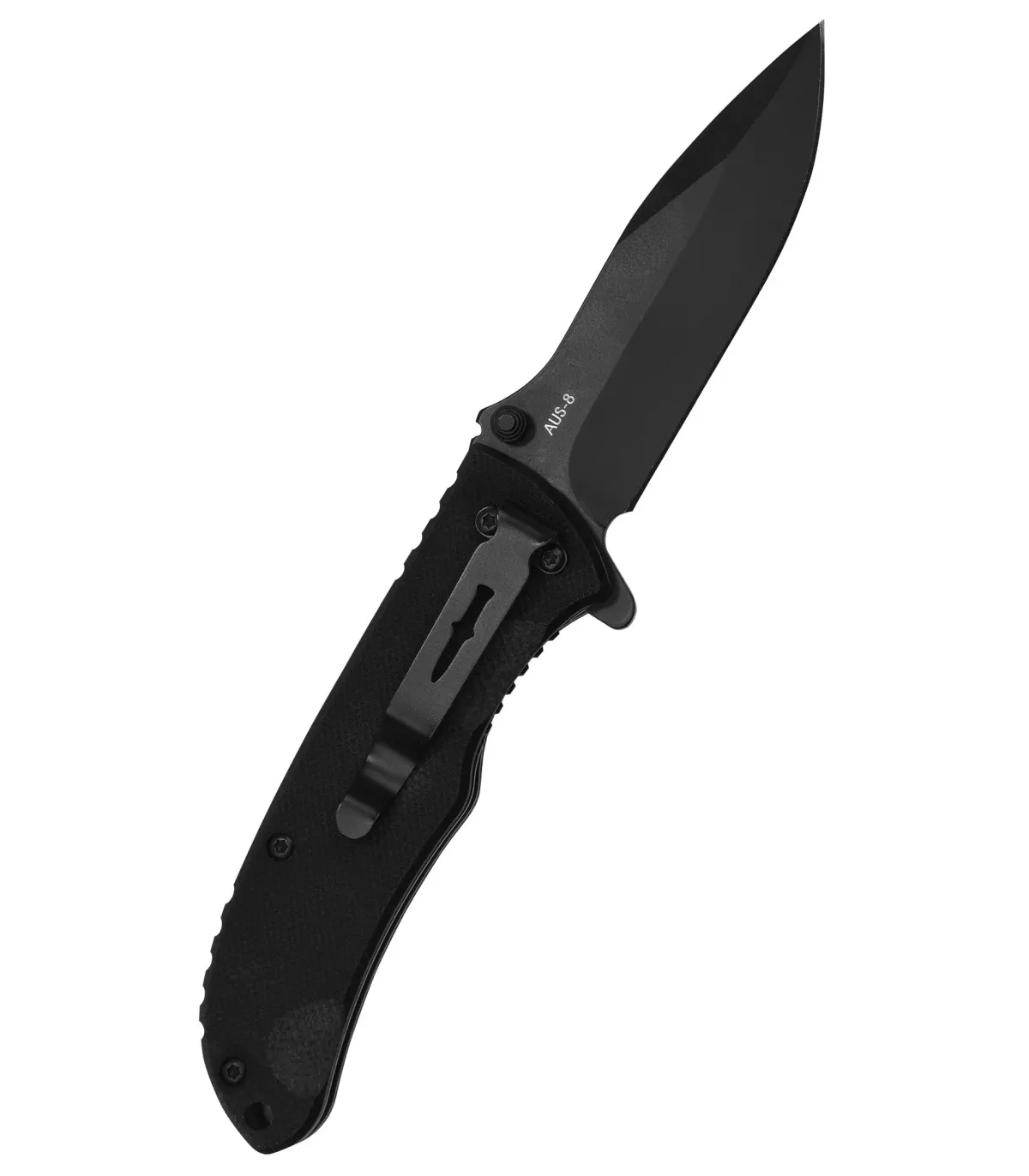 - Practical design: Equipped with a safety lock, this knife opens easily via thumb studs or a flipper, which also functions as a finger guard when open. Its stainless steel clip allows for comfortable carry on your belt, keeping it always within reach.