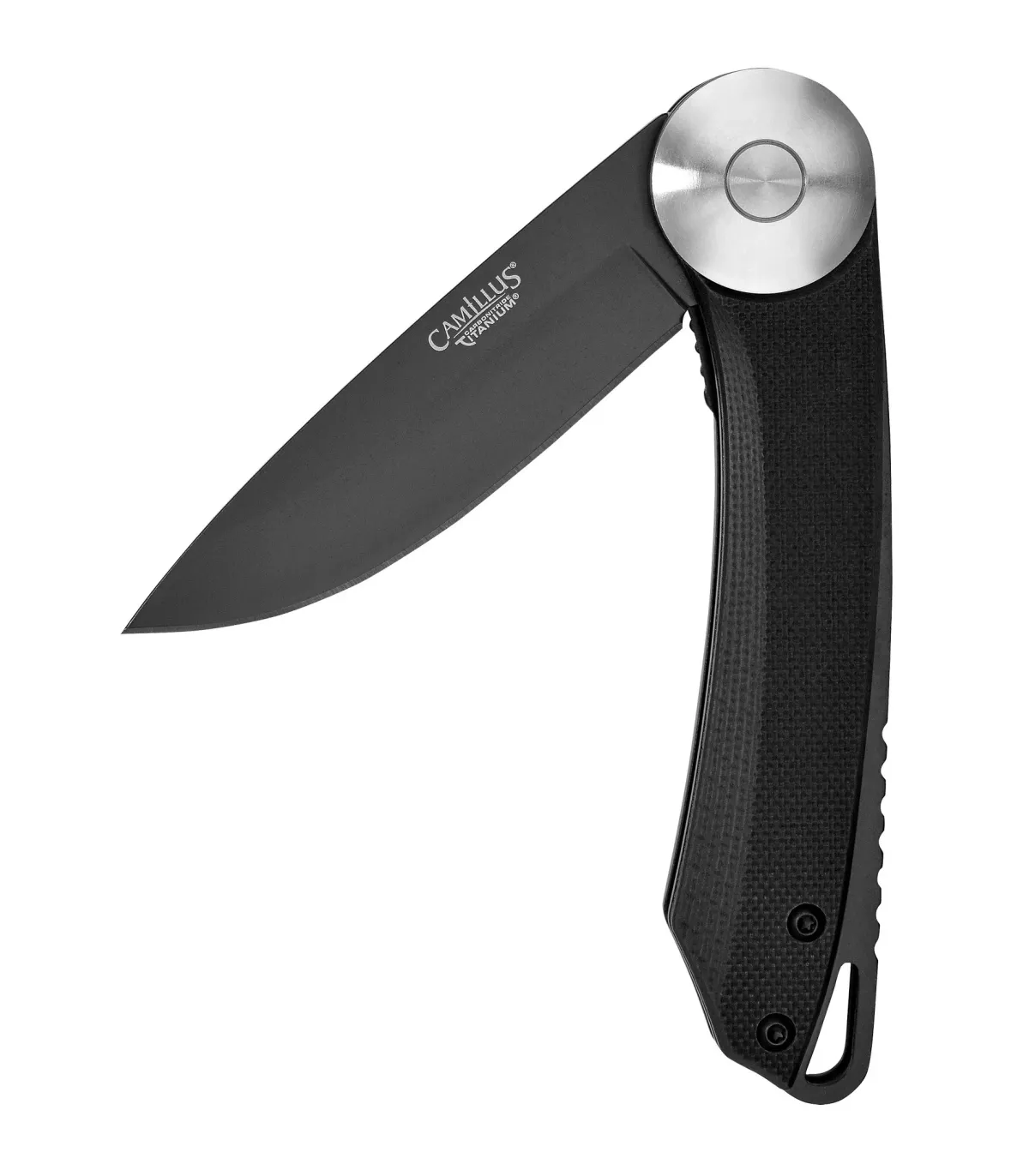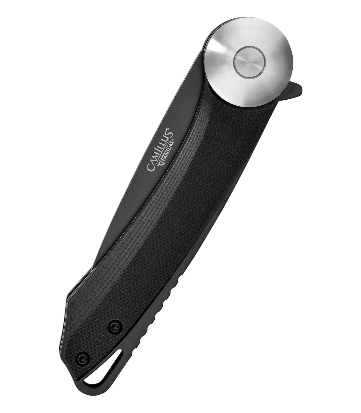 Descubre la fiabilidad incomparable de la navaja de campo Camillus modelo CIRQUE en elegante color negro.