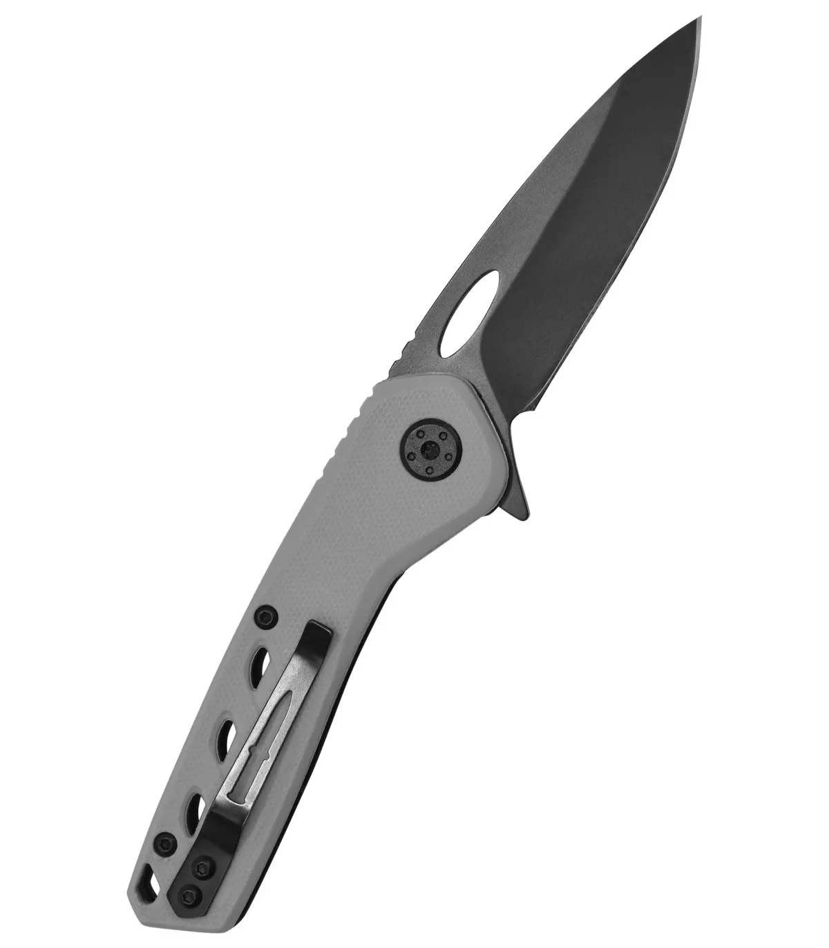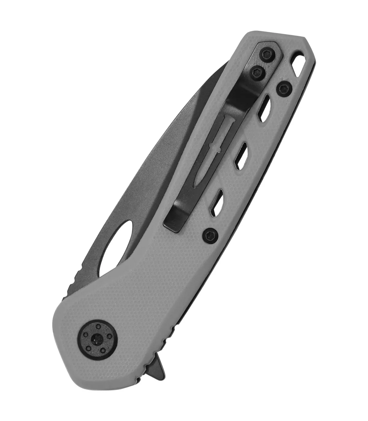 - Ergonomic handle: The gray handle is made of fiberglass-reinforced nylon (GFN), offering a firm and secure grip thanks to its textured surface and integrated thumb rest. With a lanyard hole and belt clip, this knife is easy to carry with you wherever you go!