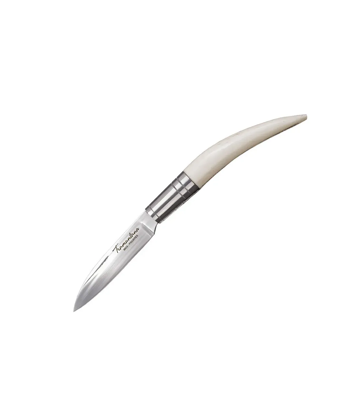 The Galician Razor Tramuntana Knives has a polished deer horn handle that makes it especially attractive and comfortable to the touch. Its stainless steel blade of 8 cm in length and a cut of 7.5 cm will allow you to perform all kinds of tasks with unique precision.