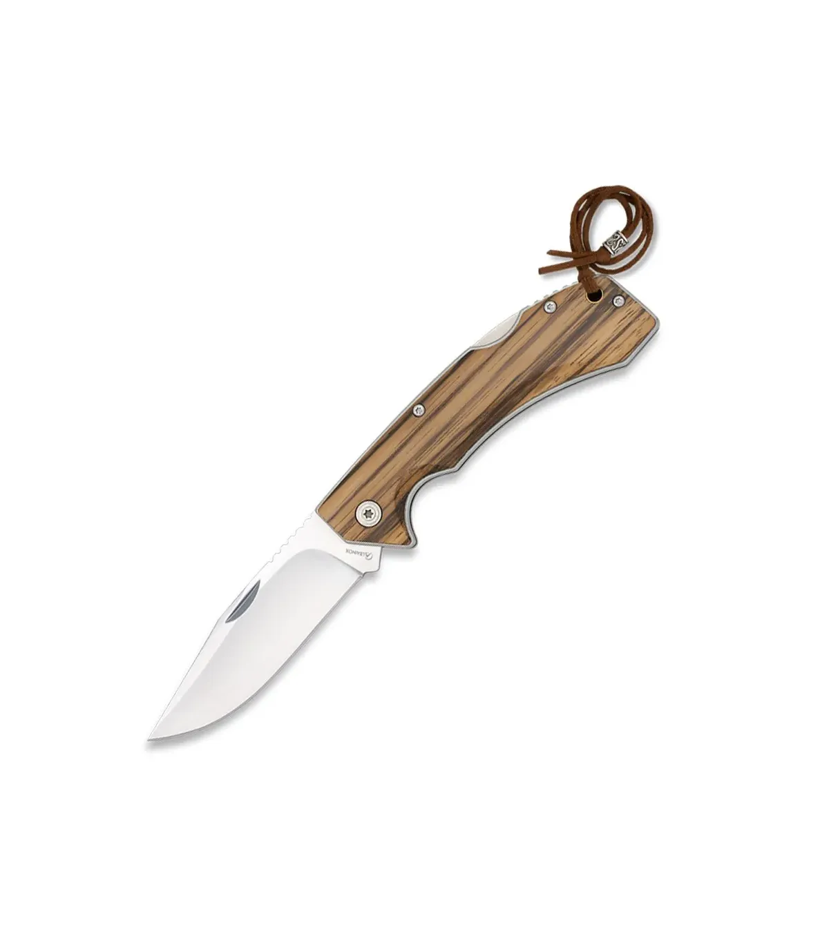 The Albainox pocket knife with Back Lock safety lock, crafted with a stainless steel 420 blade and Zebra wood handle with CNC-overlaid scales, is an essential tool for anyone wanting to keep a quality knife at hand. It is made from top-quality materials and features an elegant and functional design.