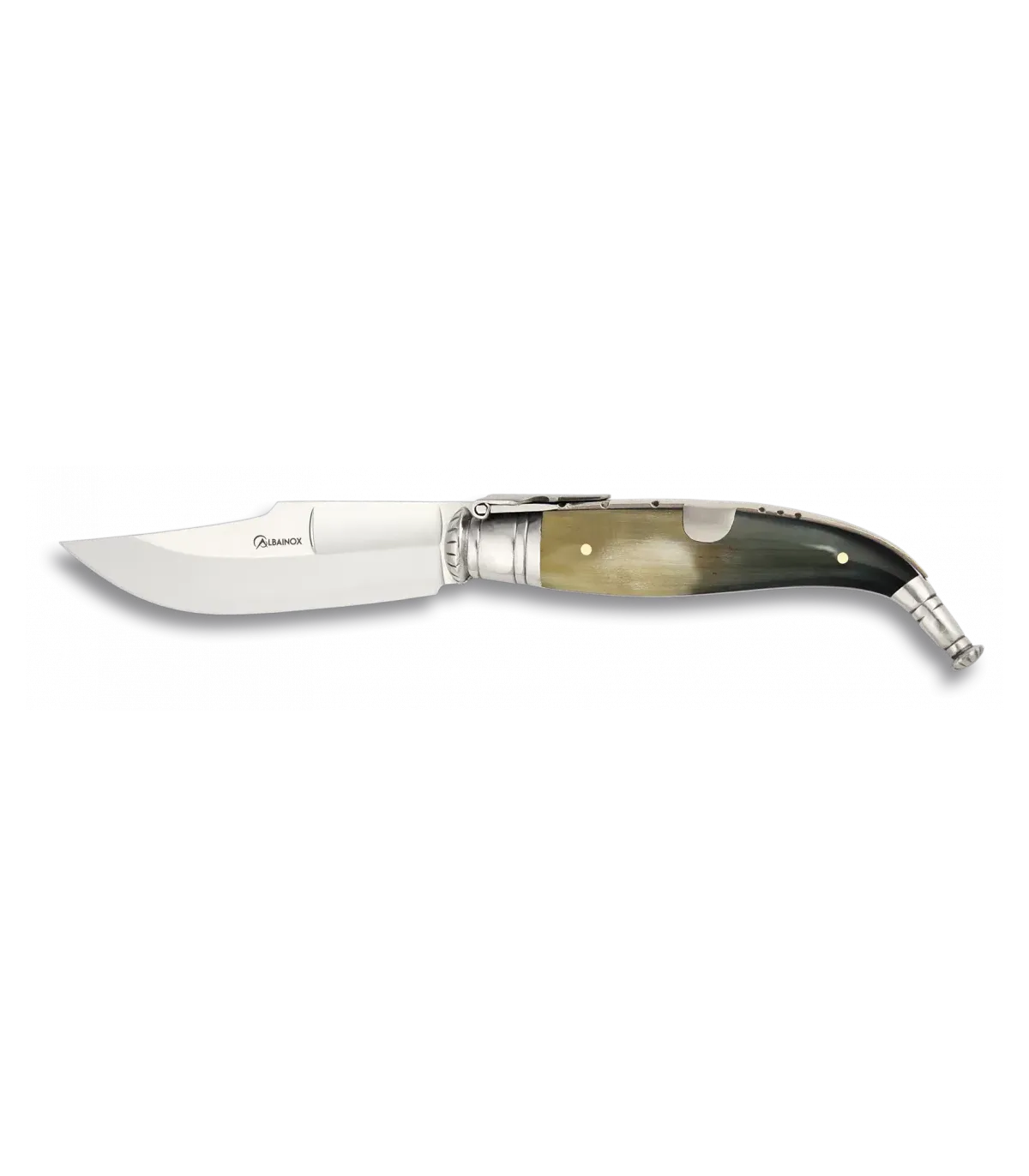 Discover Elegance and Functionality in the Palm of Your Hand with the Spanish Folding Knife with Bull Horn Handle! Are you looking for a knife that perfectly combines Spanish tradition with the highest quality? Look no further! We present to you the Spanish Folding Knife with Authentic Bull Horn Handle and a 6 cm Stainless Steel Blade with Mirror Finish. Let me tell you why this knife will become your essential companion: