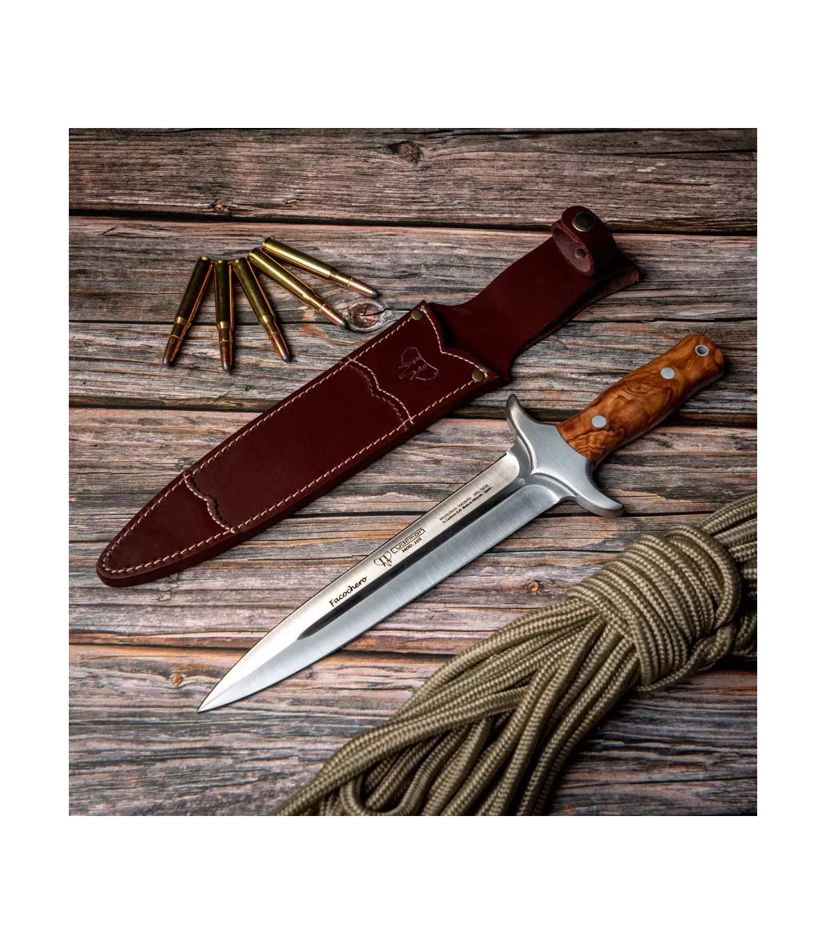 Hunting knife manufactured in Albacete (Spain) by the firm Cudeman. Olive wood handle. Includes sheath.