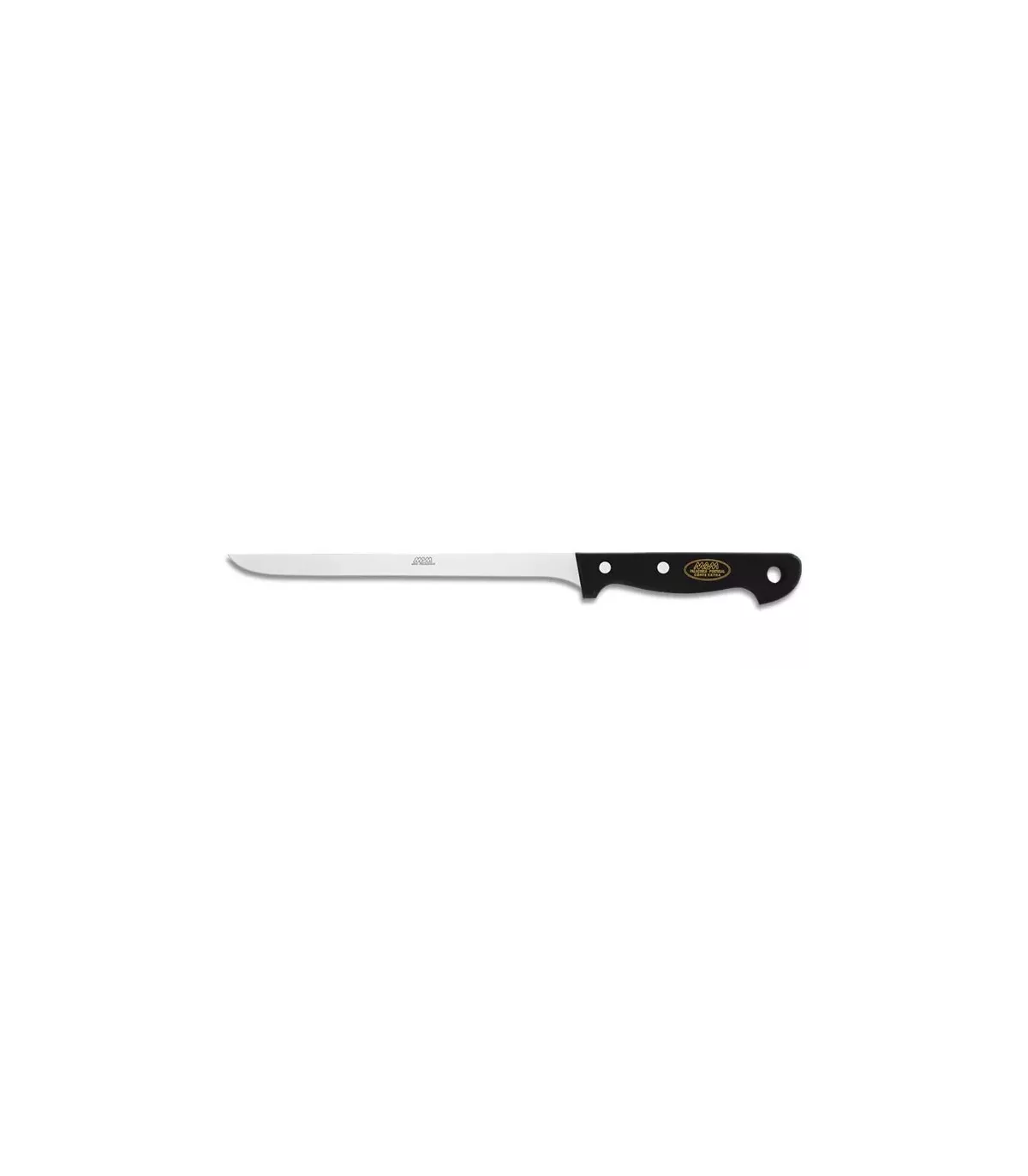 Awaken your culinary skills with the professional ham slicing knife from MAM! This exceptional knife features a 24 cm stainless steel blade, specifically designed to provide precise and perfect slices every time. Its Magnum handle offers a firm and ergonomic grip, allowing you to have absolute control during the cutting process.