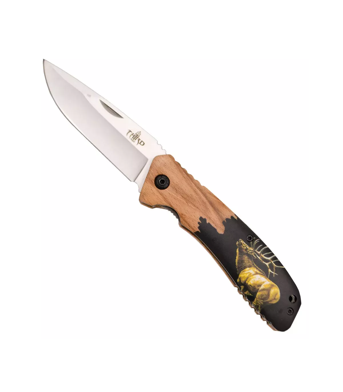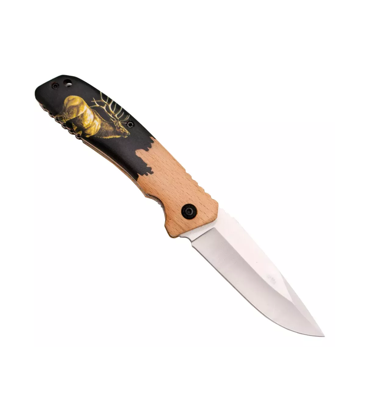 Discover the Field Knife Third Model Deer, an essential tool for your outdoor adventures. With a sturdy and elegant design, this knife combines functionality and style. Its handle made of beech wood, decorated with a black and yellow print of a deer on both sides, not only provides a comfortable grip but also adds a distinctive touch to your equipment.