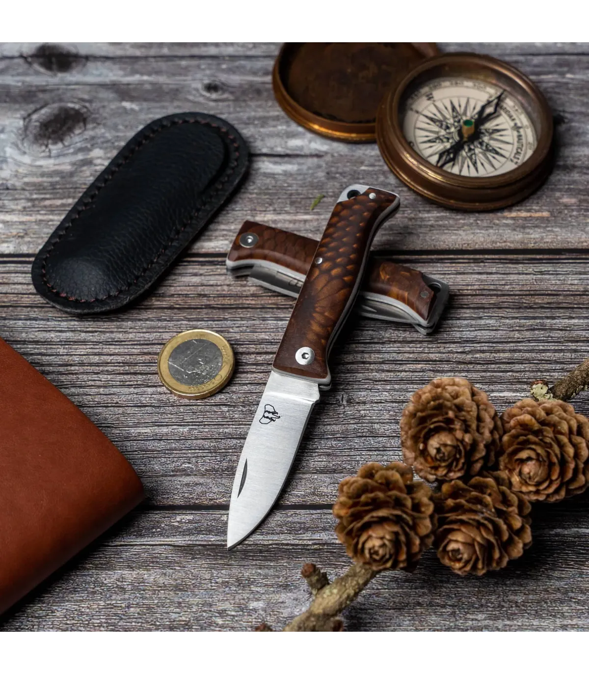 This knife is a smart choice for those seeking a combination of design, functionality, and safety in a versatile tool for everyday use or hunting activities. With the Cudeman MT-10 brown, you will have in your hands a piece that combines elegance and efficiency, perfect for any adventure.