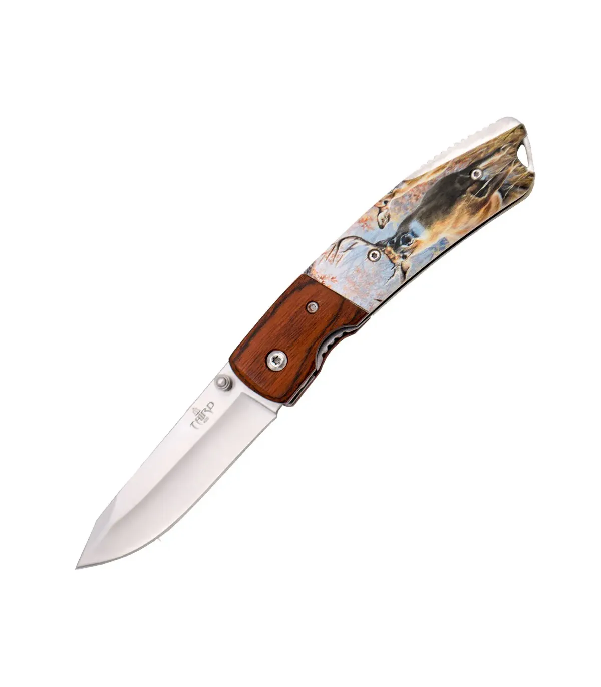 Attention, hunting enthusiast! Discover the Deer design hunting knife, an authentic masterpiece that combines functionality and style in a single product. Featuring an impressive 3D engraved deer design on its wooden and ABS handle, this knife will capture the attention of all your hunting companions.