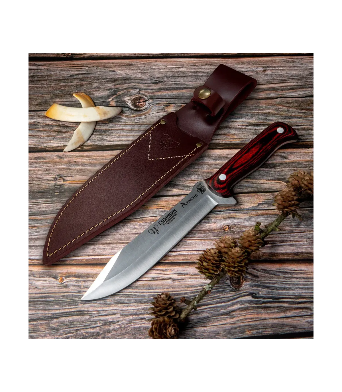 Discover the excellence of the Cudeman brand with the Hunting Knife manufactured in Albacete, Spain. This knife is synonymous with quality and craftsmanship, perfect for hunting enthusiasts. Its polished red stamina handle is not only visually appealing but also provides a comfortable and secure grip, even in the most demanding conditions.