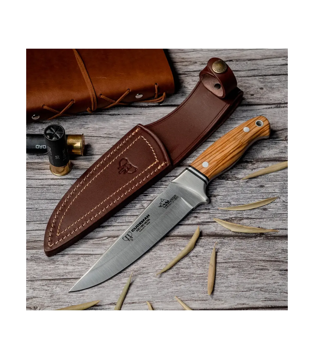 The hunting knife comes with a leather sheath that protects the blade from the elements and allows for safe and practical transport. The combination of noble materials, such as Molybdenum Vanadium and olive wood, highlights the commitment to quality and traditional craftsmanship.