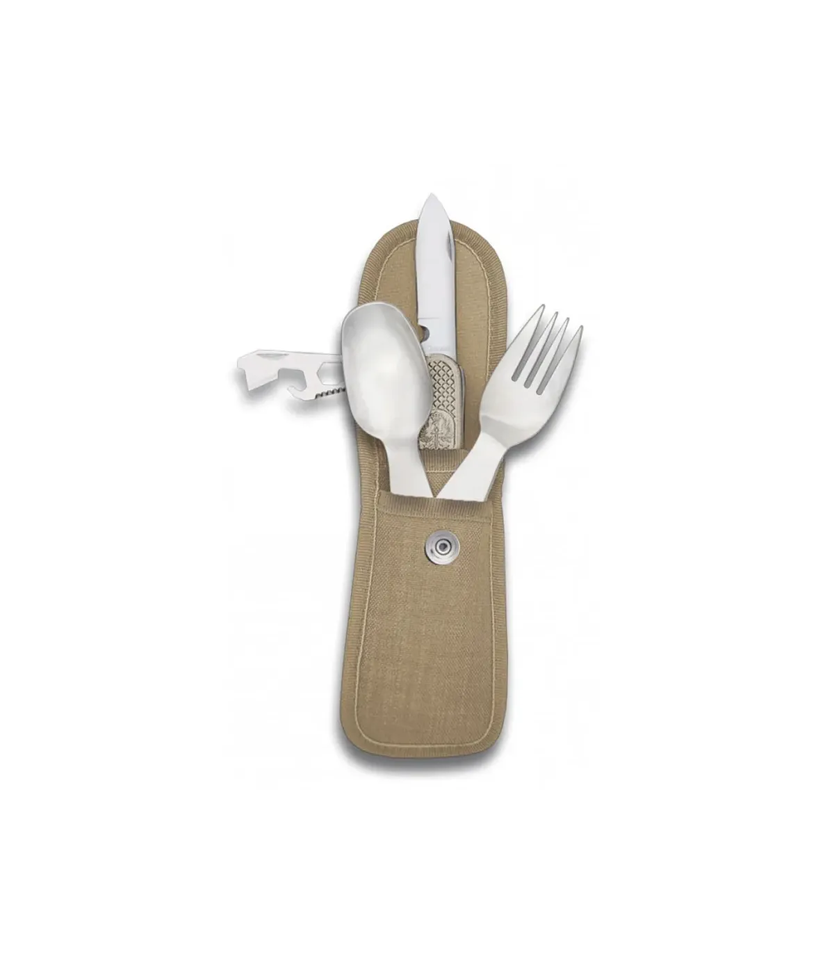 Camping Cutlery Set with Desert Camo Pixel Case by Albainox. For the modern adventurer seeking functionality without sacrificing style, Albainox's camping cutlery set is the perfect choice. With a combination of essential tools and a desert camo pixel design, you will be ready for any outdoor getaway.