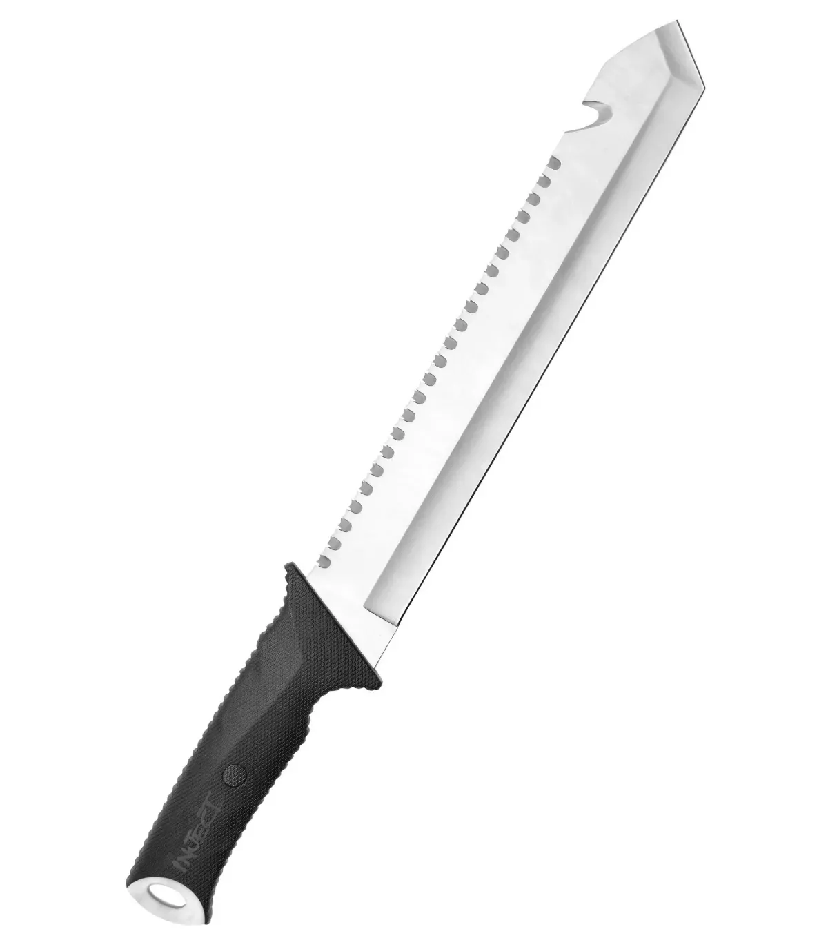 The tactical machete with saw, Camillus model CARNIVORE INJECT, is a versatile and durable tool designed to handle a variety of tasks in outdoor environments. Here are some highlighted features: