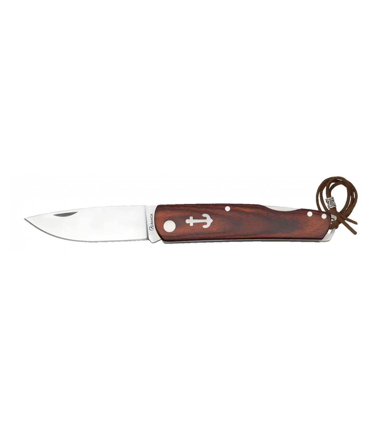 Do you need a resistant and durable sailor knife? The dark brown sailor knife from the brand ALBAINOX is the perfect tool for you. With a 7.50 cm stainless steel 3Cr13Mov blade and a dark brown wooden handle measuring 10.30 cm, this knife is ideal for any nautical sports enthusiast or anyone seeking a reliable and stylish tool.