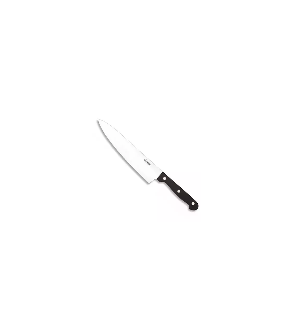 This knife, made by Martínez Albainox, stands out for its quality and performance in the kitchen. The polypropylene (POM) handle provides a perfect balance between comfort and durability. The 20 cm stainless steel blade is versatile and suitable for a wide range of cuts and preparations. Additionally, it is presented in blister packaging that protects the knife and allows for an attractive presentation.
