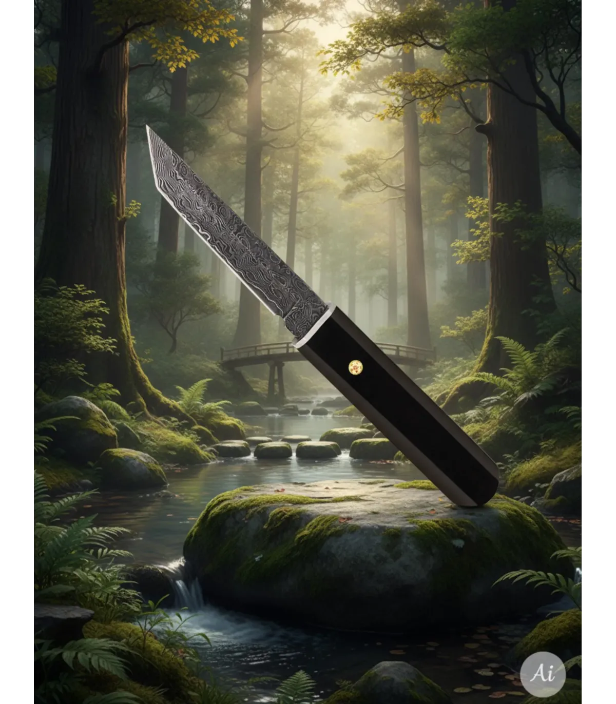 Its aged Damascus steel blade with 72 layers guarantees exceptional resistance and a unique wavy pattern that reflects tradition and perfection in every edge. Designed with a single edge, it allows you to make precise and smooth cuts, ideal for tasks requiring accuracy and delicacy.