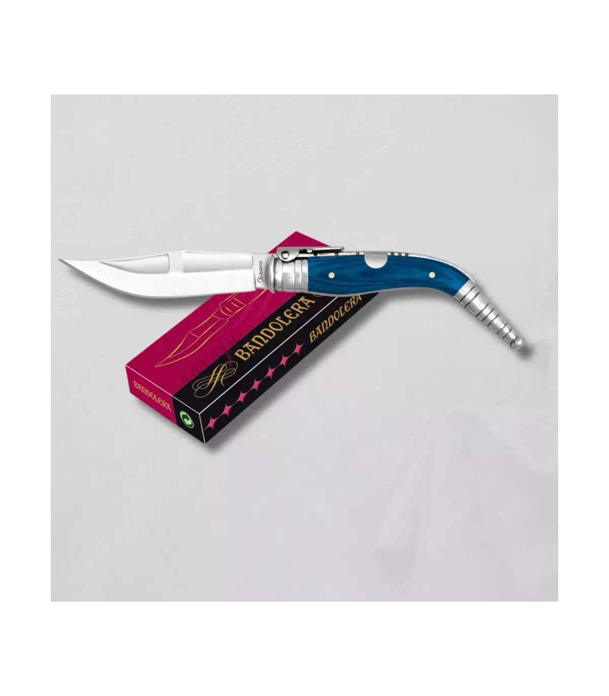 Are you looking for a knife that combines style, functionality, and a bold touch? The 'Bandolera' by Albainox is just what you need to stand out in any situation. With an eye-catching design and details designed to surprise, this 5 cm blade made of 3CR13MOV steel shines with its glossy finish, conveying durability and elegance.
