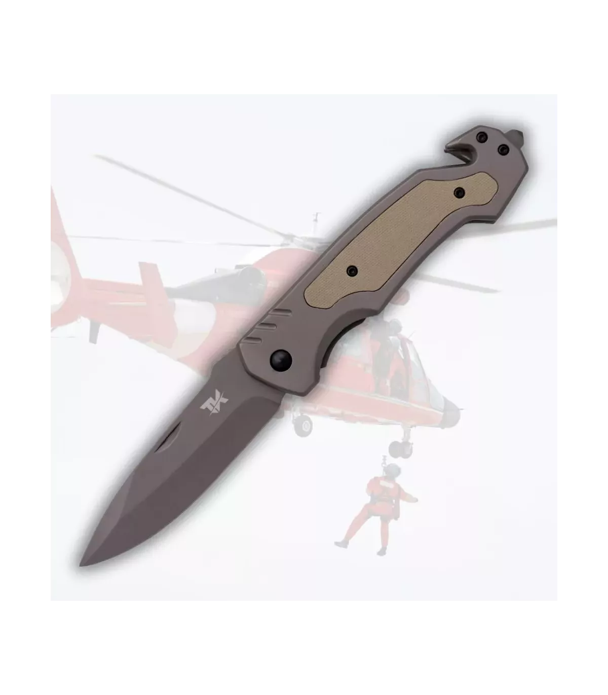 The Tramuntana Knives N84T rescue knife is the ideal tool for those seeking a balance between design and functionality. Its 9.6 cm steel blade made of 420 steel is coated in gray titanium, ensuring superior corrosion resistance and an attractive appearance. With a thickness of 2.75 mm, it offers efficient and precise cutting, perfect for any emergency situation.