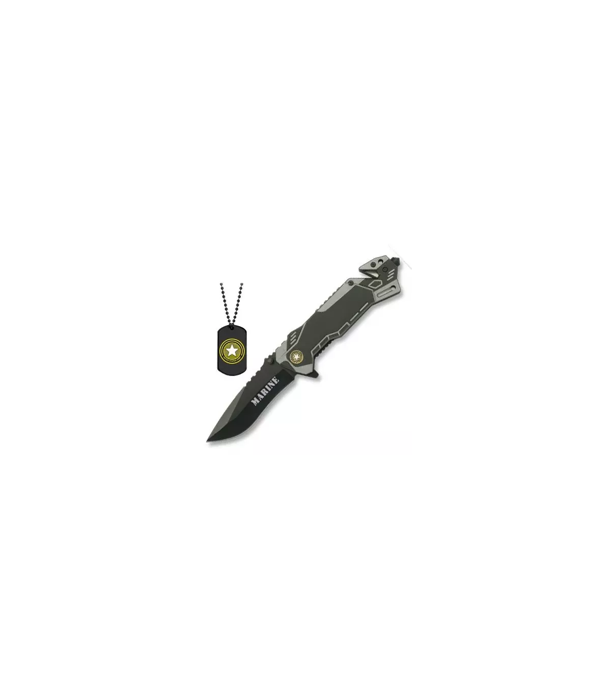 Prepare to face any challenge with the Marine model rescue knife! Featuring an 8.1 cm stainless steel blade and a durable aluminum handle, this tool offers maximum efficiency and functionality in critical situations.