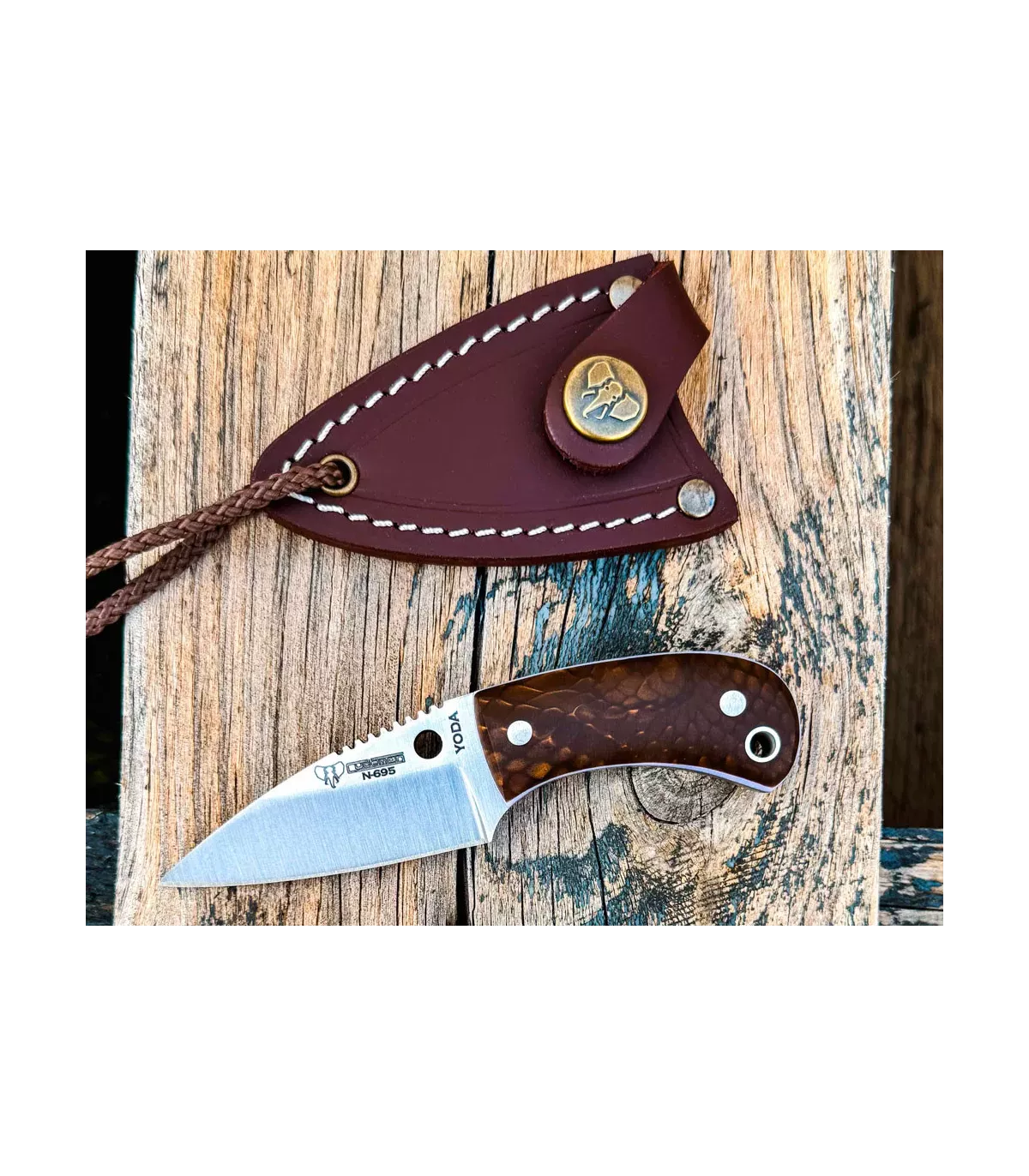 Discover the Yoda Juma knife with a brown handle by Cudeman, a true gem for adventure and quality enthusiasts. This knife is a perfect fusion of robust functionality and elegant design, ideal for any outdoor task or as a standout piece in your collection.