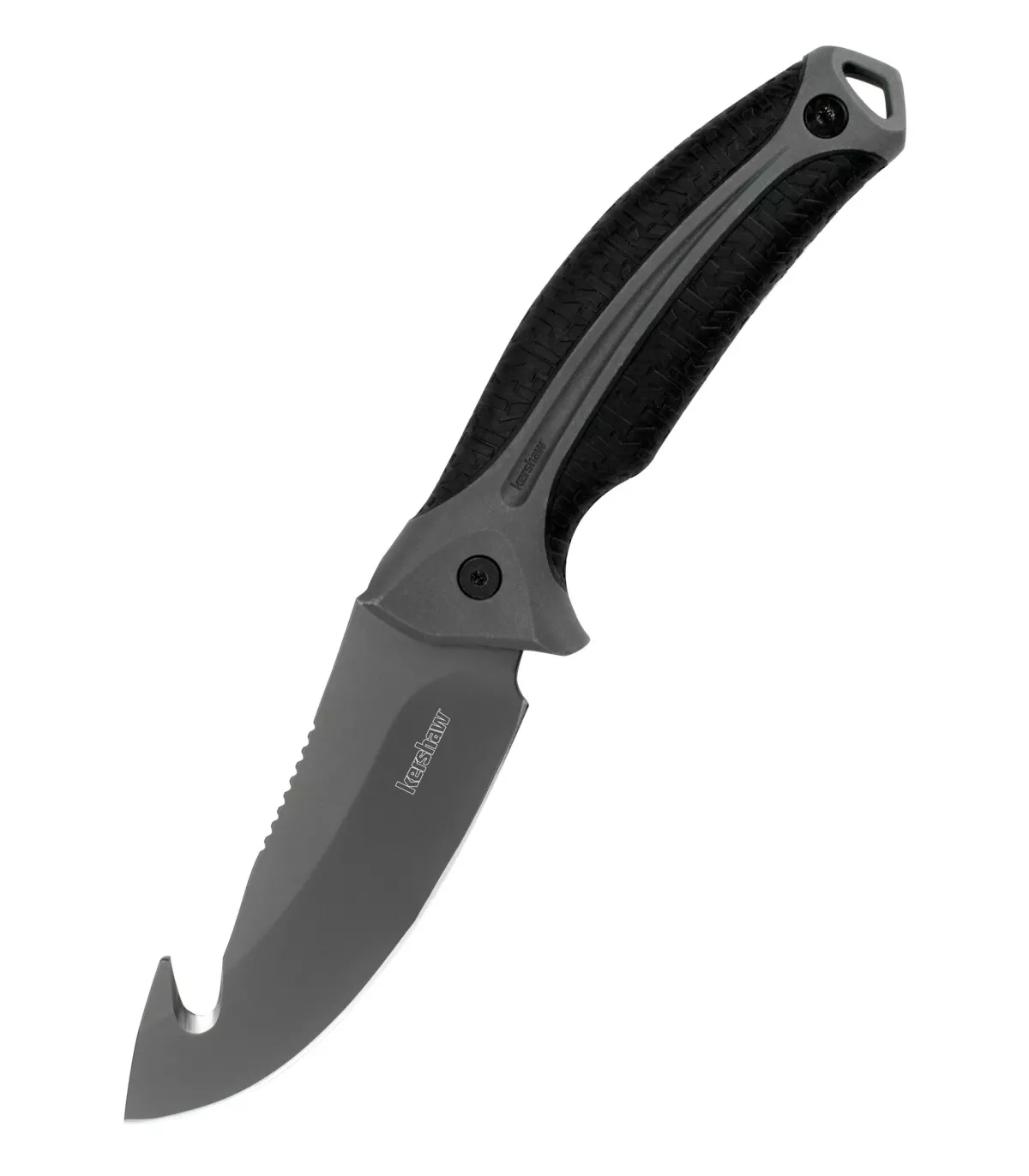 Kershaw hunting knife model Lone Rock, skinning knife. This series offers a collection of durable and versatile outdoor tools designed to handle almost anything your next hunting trip may present. Whether you need to grip the blade or hold the full handle for greater leverage, these knives are always easy to use and provide an extra secure grip.