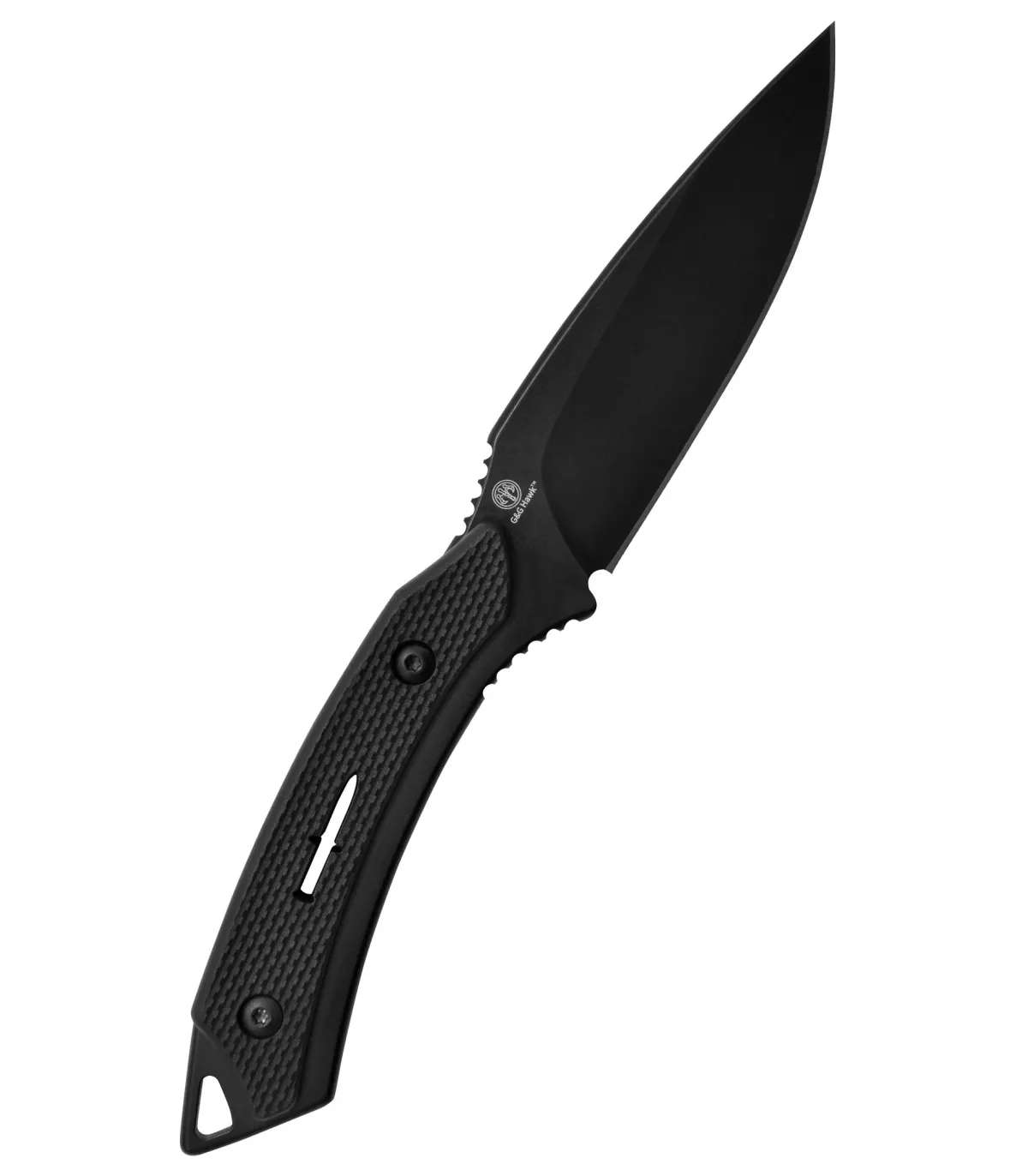 - Robust and durable blade: With a total length of 19.7 cm, the black blade measuring 8.9 cm is made from high-quality 440 steel. This stainless steel offers an exceptional balance between hardness and corrosion resistance, ensuring long-lasting performance in any environment. Additionally, its hollow grind and drop point shape make it ideal for a variety of outdoor tasks.