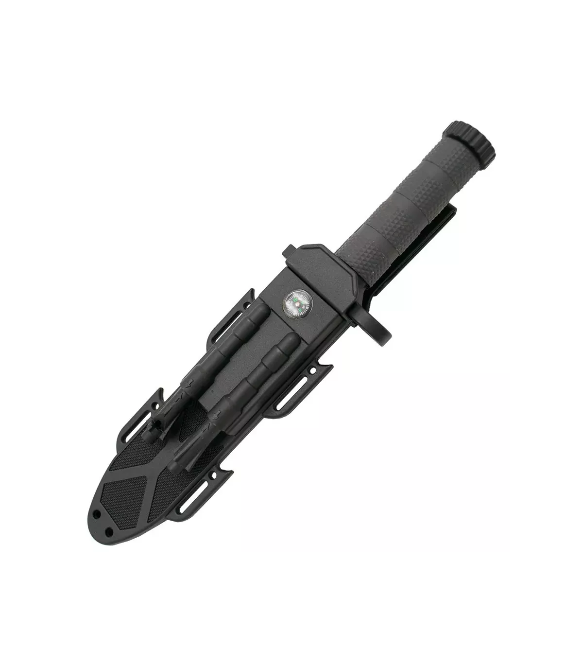 The included fiber sheath with the knife has an integrated compass, allowing you to navigate easily in unfamiliar terrain. Additionally, it includes a sharpener and a flint with a whistle, so you are always prepared for any survival situation.