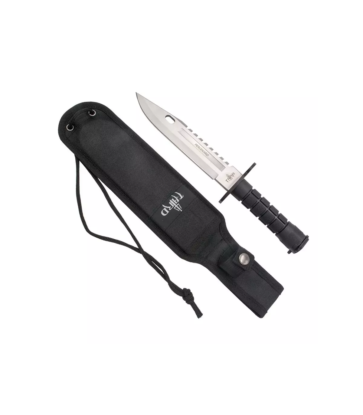 Are you looking for a high-quality tactical knife that can adapt to any situation? The Third Mercenary model tactical knife is what you need! With a 19.5 cm satin-finished 420 steel blade and a black ABS handle, this knife is ideal for any cutting or survival task you can imagine. Weighing 525 grams and with a total length of 32.5 cm, this knife is easy to handle and carry.