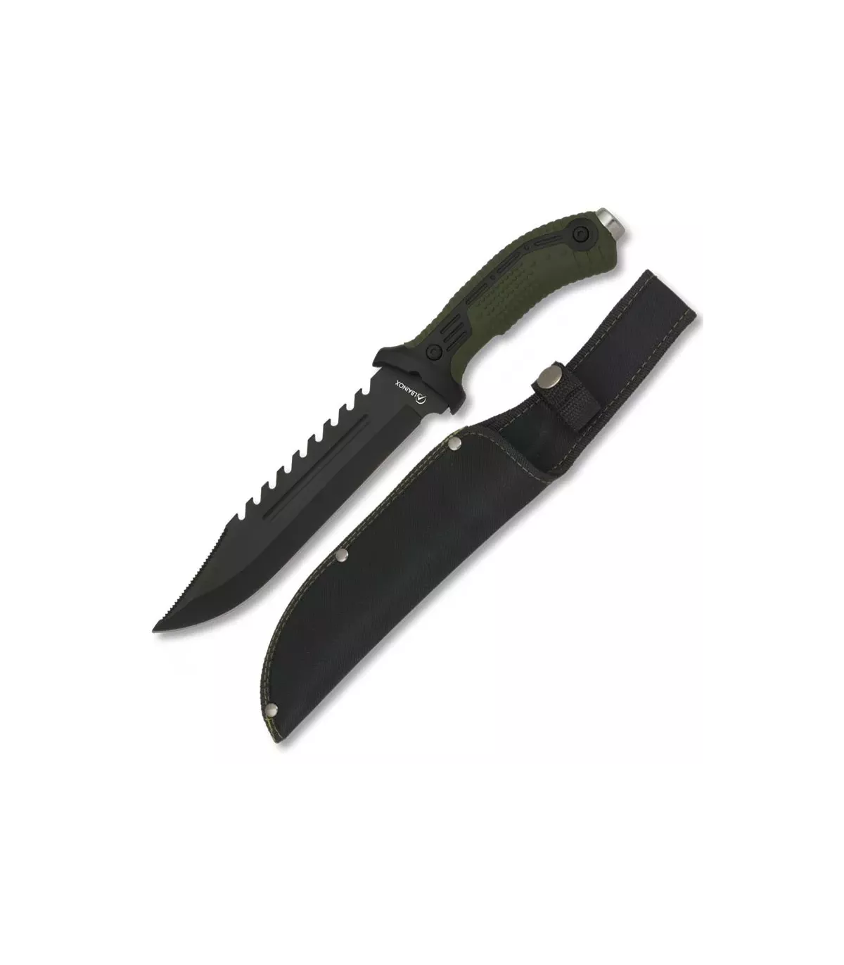 If you are looking for a high-quality tactical knife that offers maximum versatility, this green tactical knife is exactly what you need. With a 19.5 cm blade made of stainless steel and a back with a saw in two sizes, this knife is capable of cutting through anything.