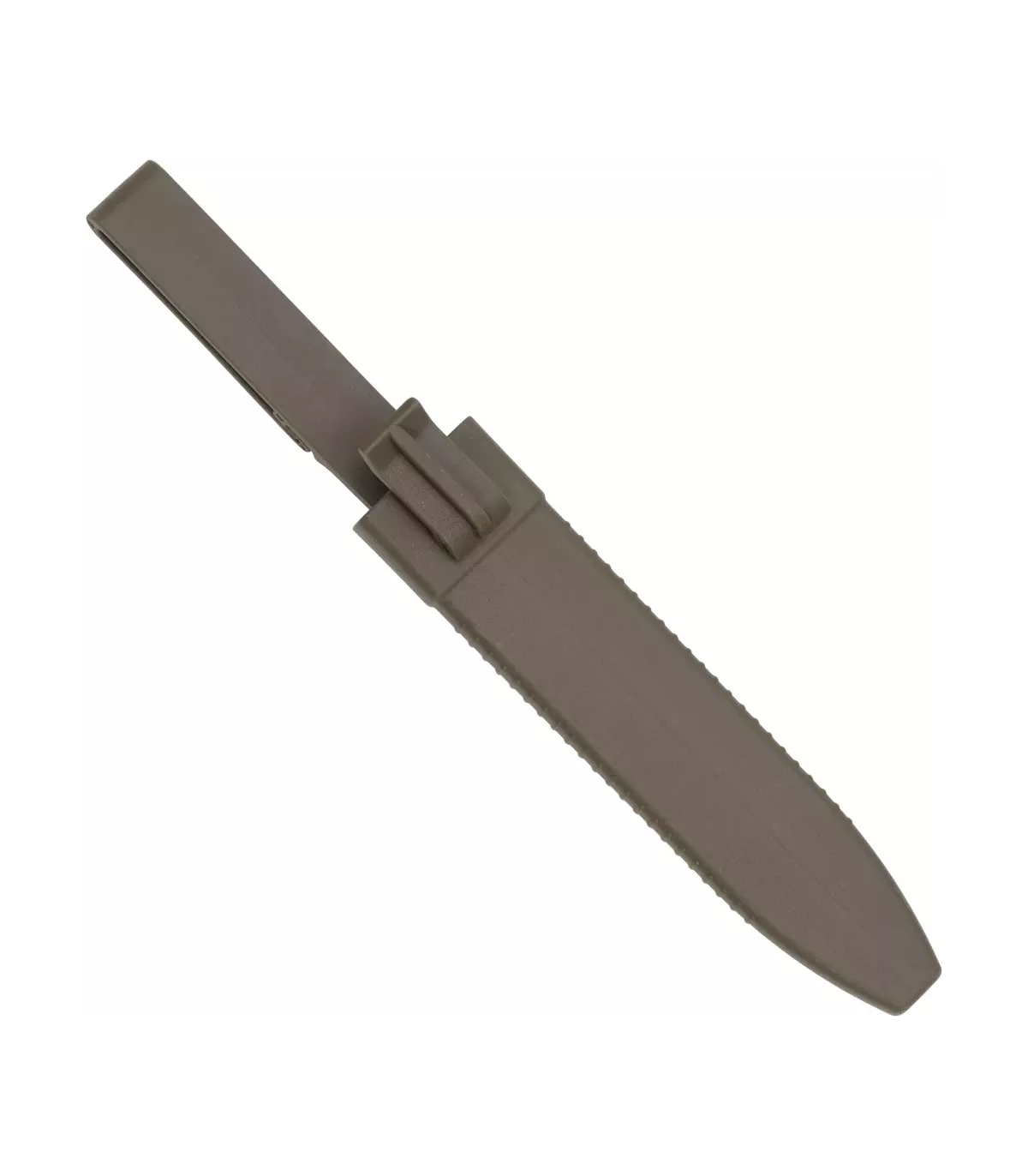 The ergonomic olive green handle not only adds a tactical touch but also fits perfectly in the hand to provide a secure and comfortable grip during use, preventing fatigue and enhancing control with each movement. Additionally, the prominent guard is a crucial safety feature, preventing your fingers from slipping toward the blade when more force is needed.