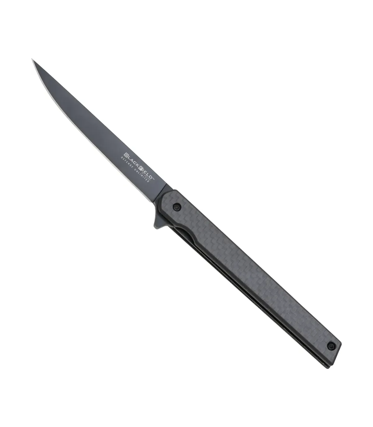 - Carbon Handle: The carbon handle not only gives it a modern and robust appearance but also provides a comfortable and secure grip. Additionally, the lightweight material helps keep the total weight of the knife at just 55 grams, making it extremely easy to handle.