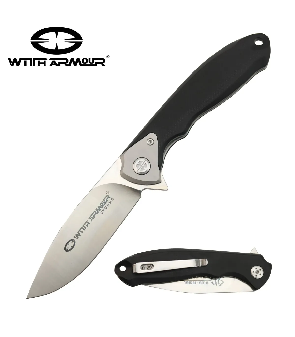 Introducing the Soldier Pocket Tactical Knife, manufactured by the renowned American manufacturer With Armour! With a blade length of 3.5 inches and a thickness of 3mm, this knife offers the perfect balance between versatility and precision. Its stone wash finish gives it a rugged yet elegant appearance.