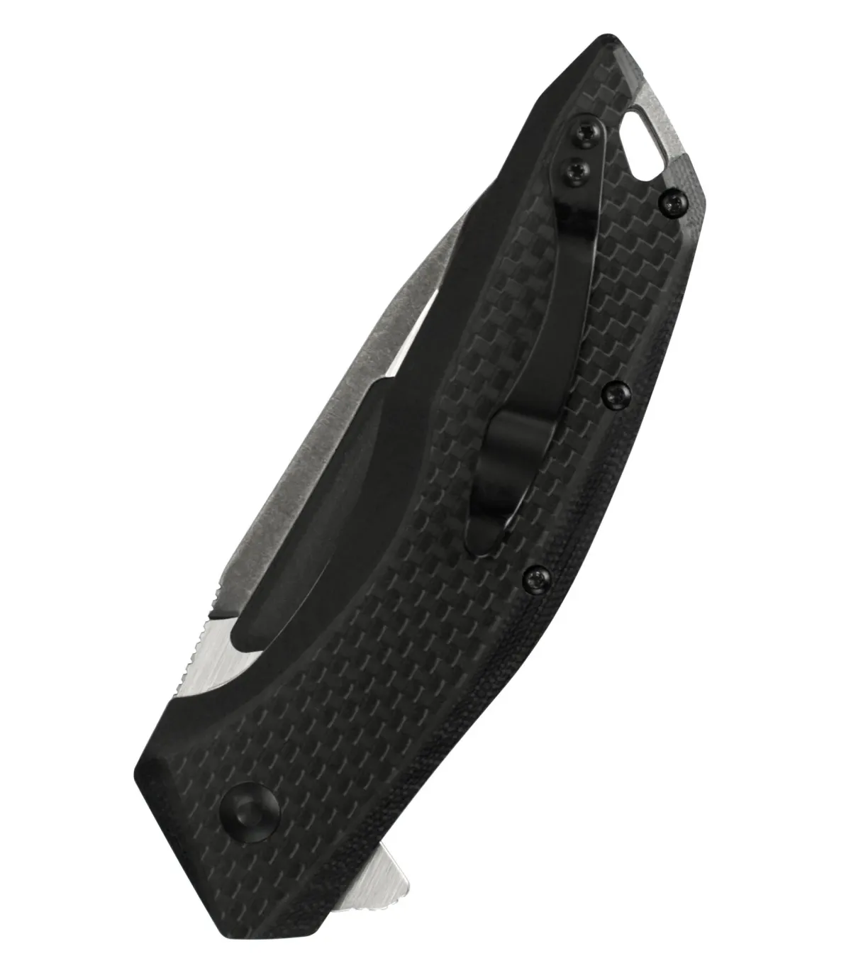 - Elegance and durability: Kershaw has taken a step forward in terms of design and finish. The blade has undergone a BlackWashed grinding process, giving it an attractive and unique appearance while also protecting against annoying scratches. The satin finish on the flat surfaces of the blades creates a two-tone contrast that not only looks impressive but also adds an extra level of resistance against wear.