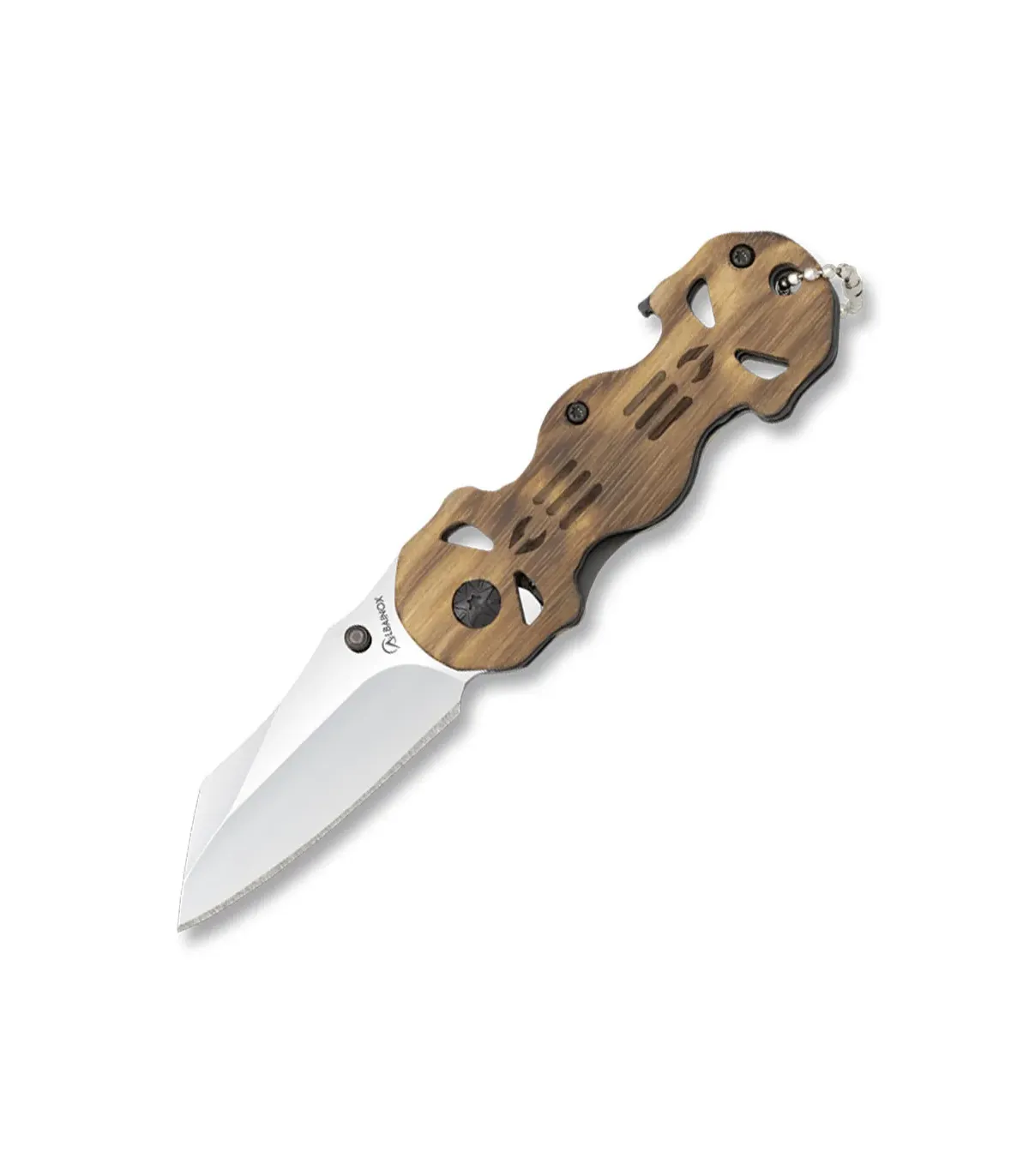 The pocket knife with a wooden handle featuring a Punisher skull design is an essential tool for anyone who wants to have a quality knife on hand. It is made with top-quality materials and features an elegant and functional design.