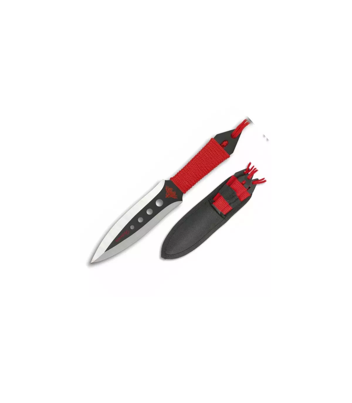 Each knife features a high-quality stainless steel blade with a single edge, making them perfect for throwing. Additionally, the red corded handle not only gives them an attractive appearance but also provides a comfortable and secure grip to enhance control when throwing the knives.