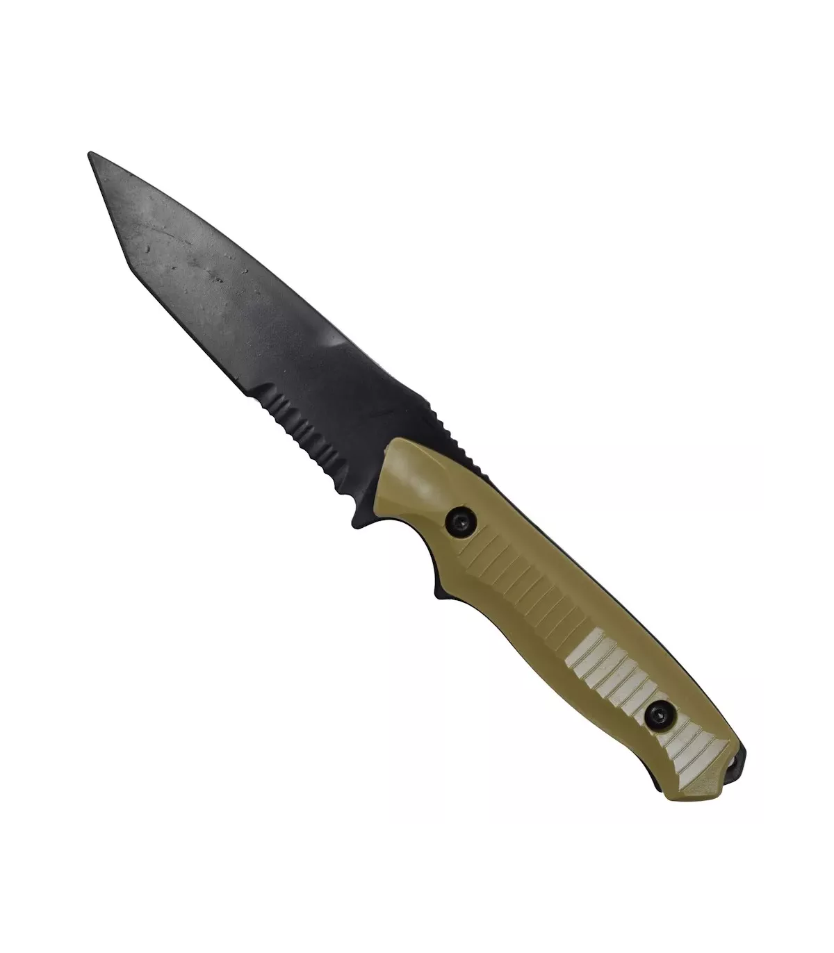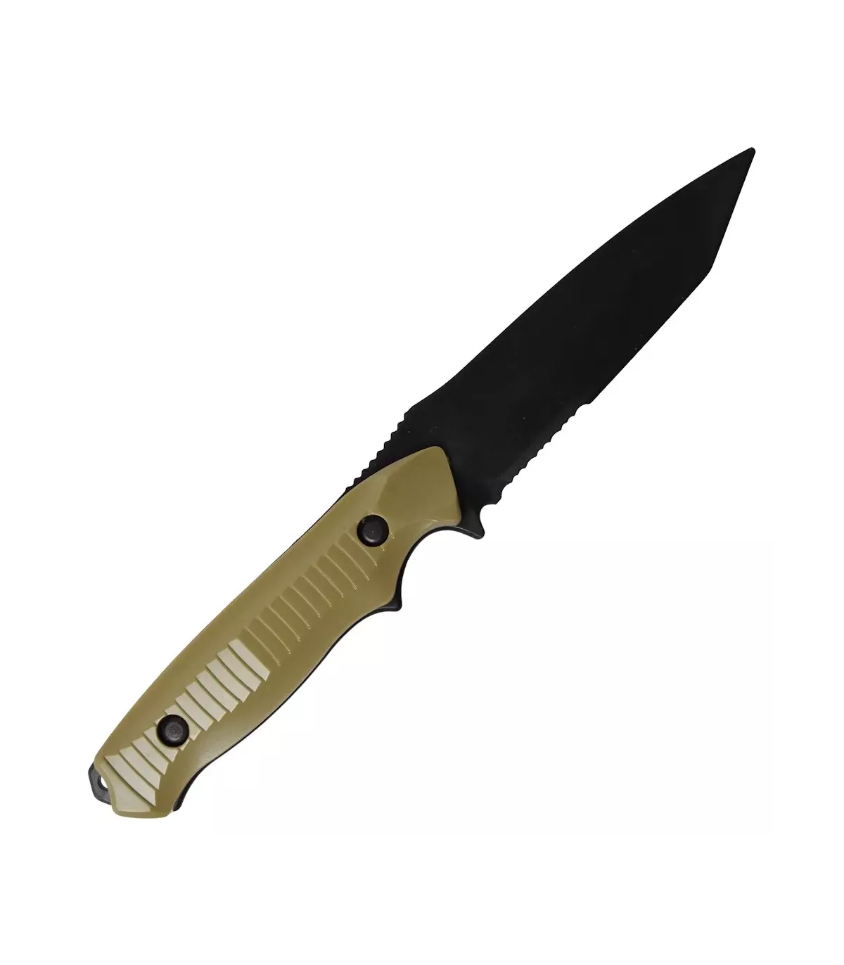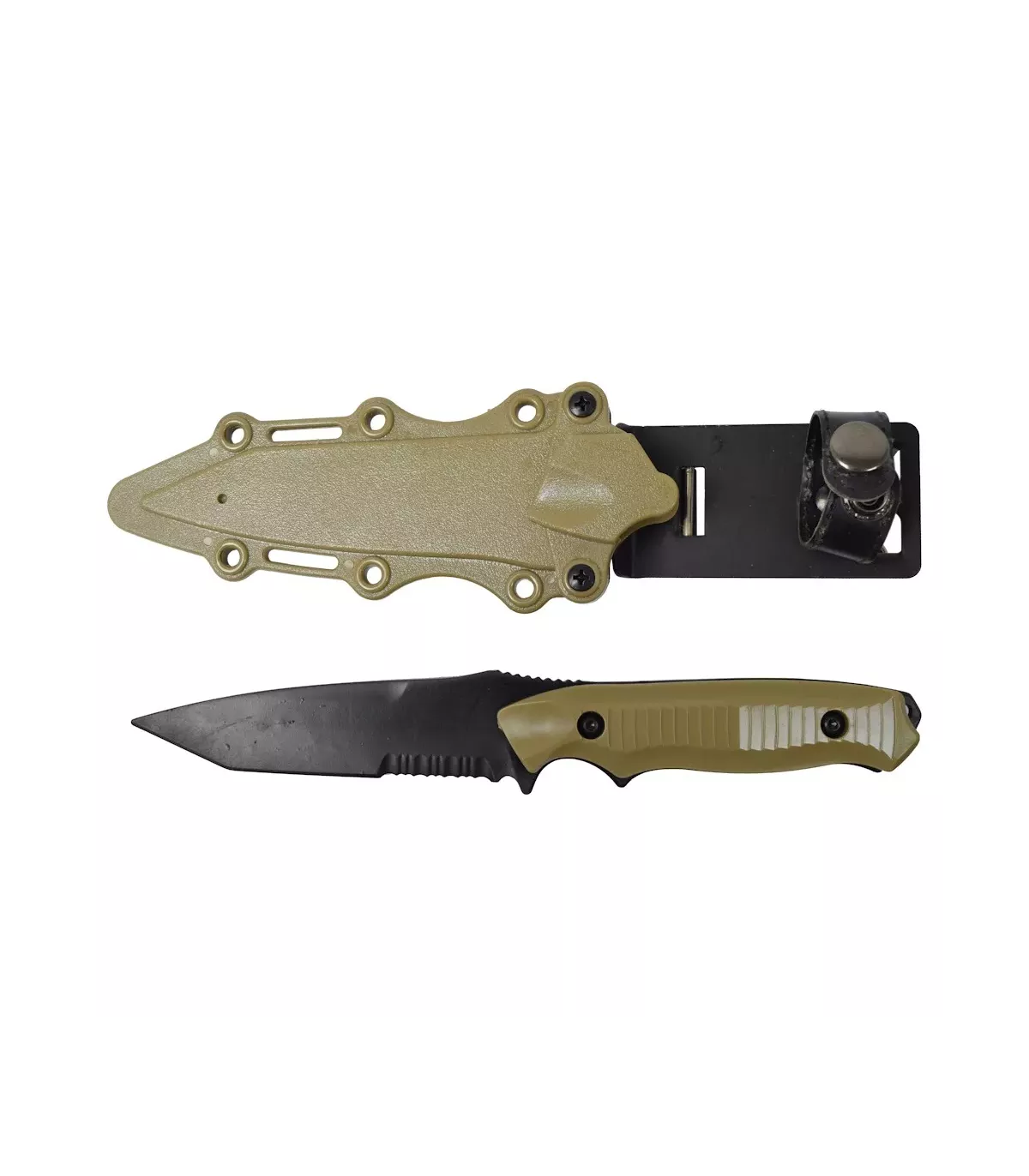 Additionally, it comes with a durable rigid plastic sheath that fits perfectly to the design, ensuring the knife is always protected and within reach when needed. The bottom locking system ensures the knife stays in place, while the button and belt pass allow for practical and comfortable carrying.