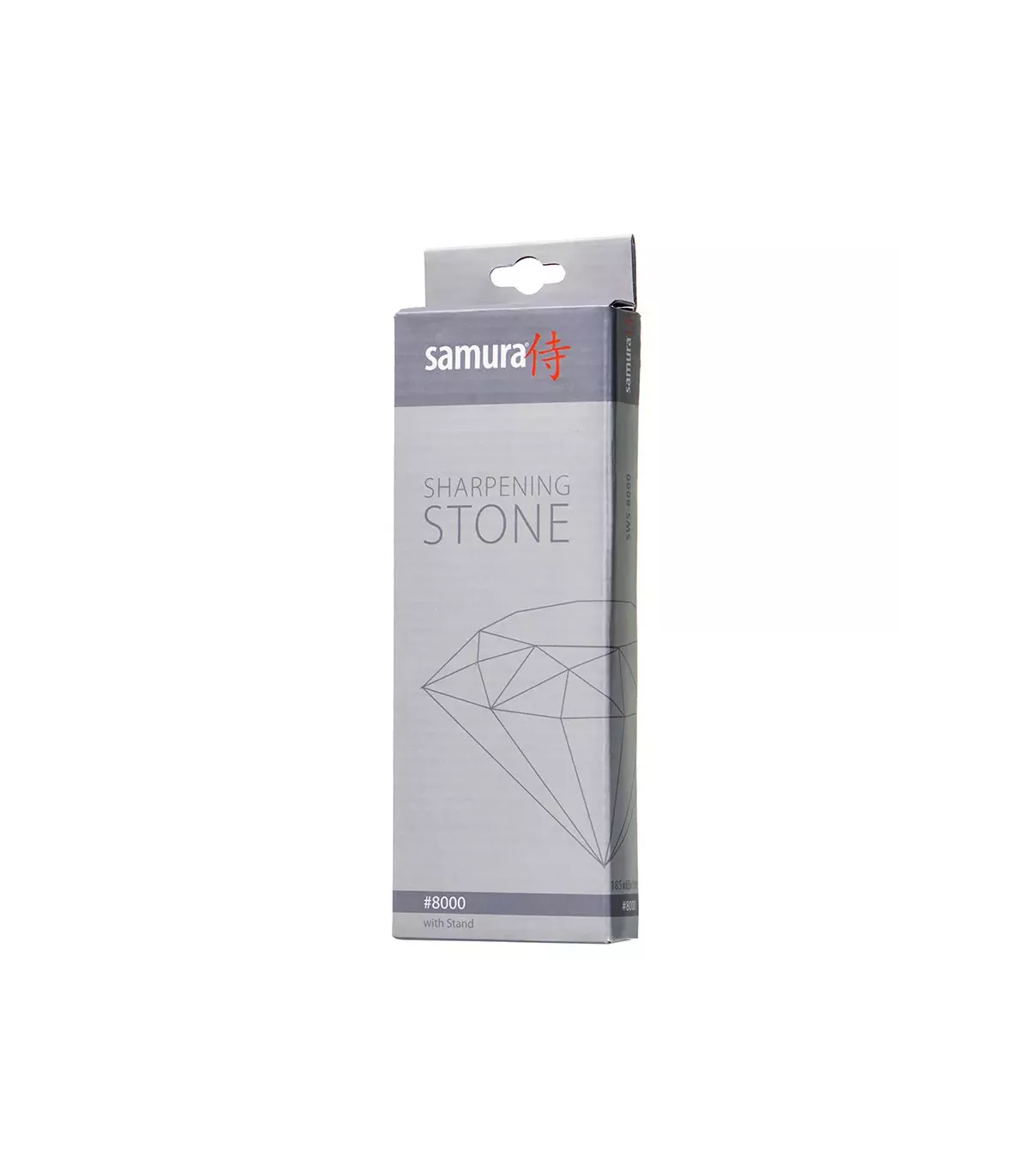 Piedra de afilar Samura de grano 8000. Las piedras de afilar Samura son adecuadas incluso para hojas muy duras con una dureza de 58 HRC o más. Todos los granos de esta piedra de afilar son completamente homogéneos para garantizar un corte uniforme y de alta calidad. Al afilar, comienza con un grano grueso y luego pasa a un grano cada vez más fino. Es ideal si los sucesivos granos son cada uno de 2 a 3 veces más finos.