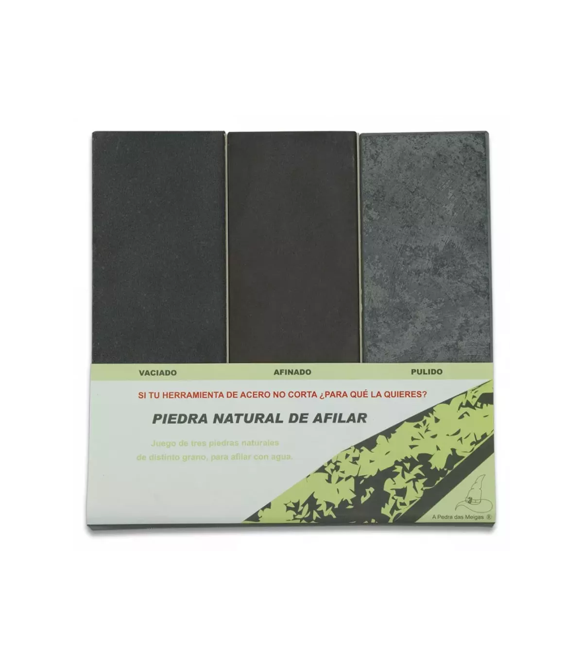 Si estás buscando una forma efectiva y versátil de afilar tus cuchillos y herramientas, el Blister compuesto de 3 piedras naturales es la elección perfecta para ti. Con tres piedras de diferentes granos, podrás vaciar, afinar y pulir tus herramientas para que estén listas para su uso diario.