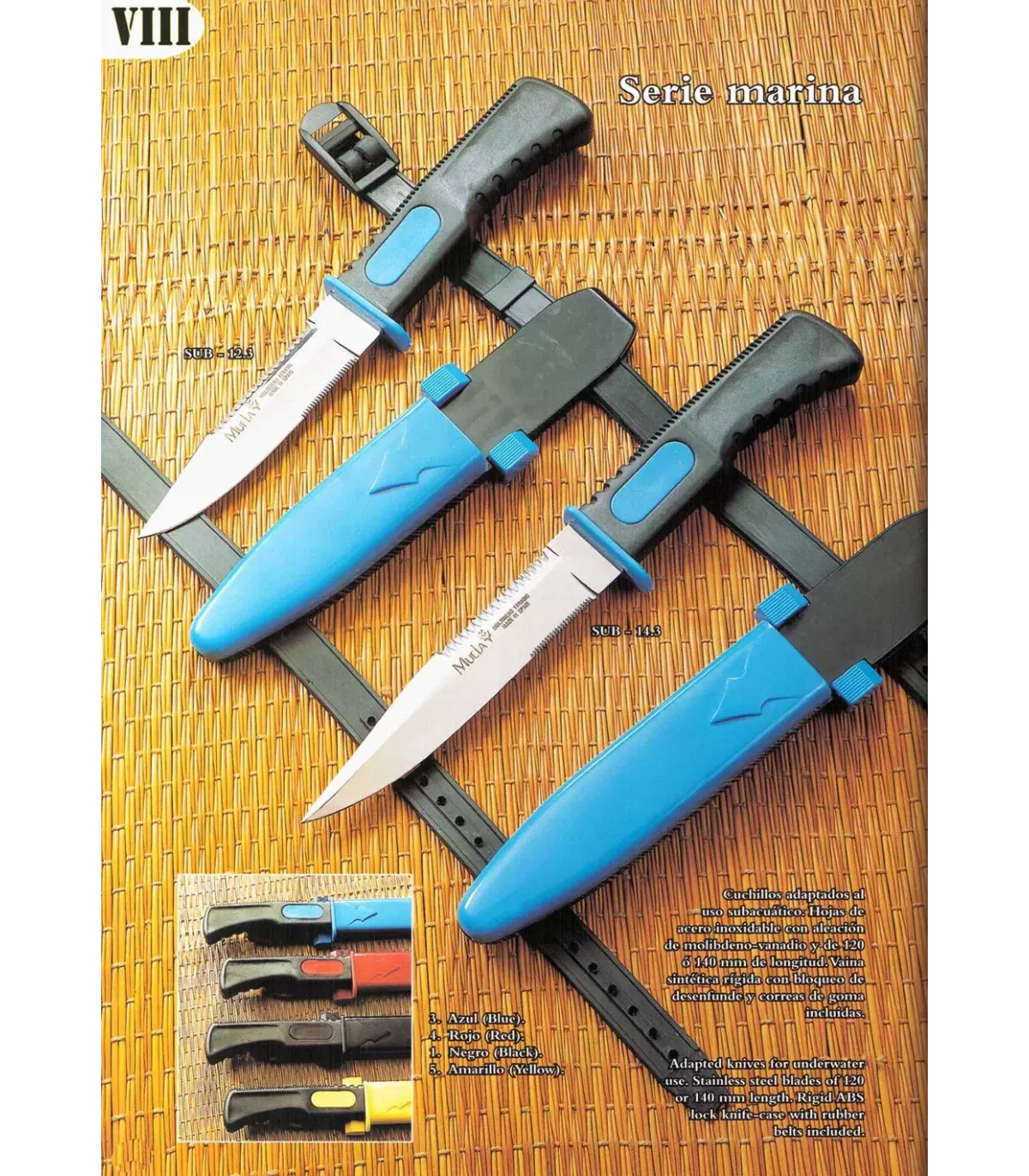 ¿Estás buscando cuchillos de alta calidad adaptados al uso subacuático? Los cuchillos con puño de goma y hojas de acero inoxidable con aleación de molibdeno-vanadio son la elección perfecta para ti. Disponibles en tamaños de 120 o 140 mm, estos cuchillos están diseñados para ser resistentes y duraderos en ambientes marinos.