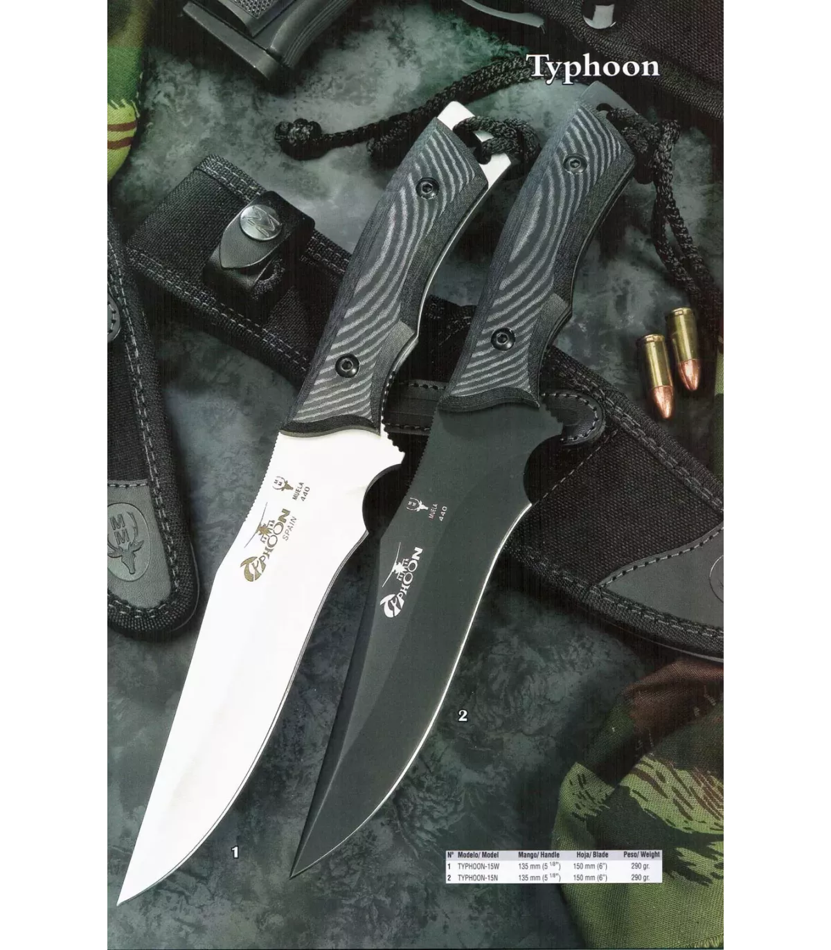 La micarta negra utilizada en las cachas del cuchillo Typhoon no solo le da un aspecto elegante, sino que también proporciona un agarre seguro y cómodo. Este cuchillo es perfecto para actividades como la caza, la pesca o el camping, y te garantiza una herramienta confiable y resistente que te acompañará en todas tus aventuras al aire libre.