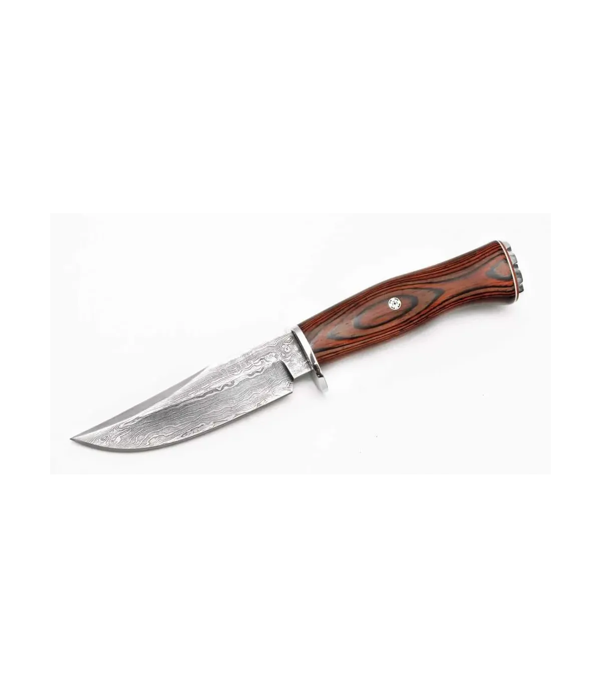 No escatimes en calidad cuando se trata de tus herramientas de caza. El cuchillo de caza modelo Braco de Muela con mango de madera prensada coral y hoja de acero de Damasco es una elección confiable y elegante para los cazadores exigentes. ¡Adquiere este cuchillo excepcional y lleva tus aventuras al aire libre al siguiente nivel!