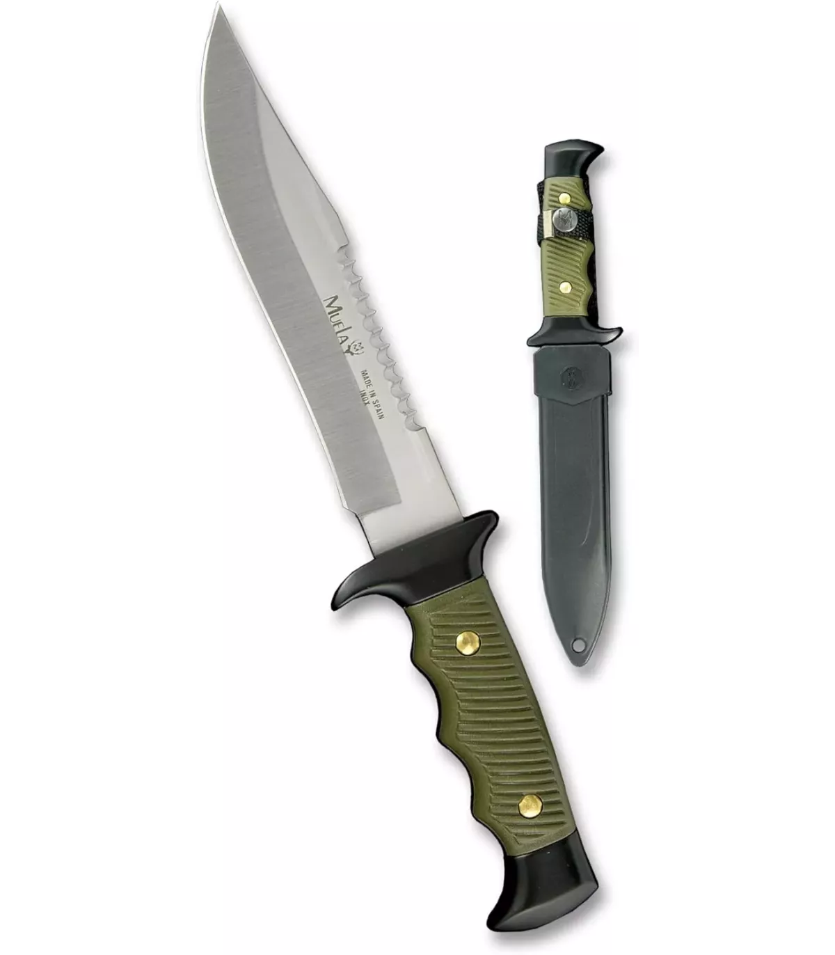 Si eres un aventurero apasionado por la caza, necesitas un cuchillo que esté a la altura de tus desafíos. El cuchillo Alce de la fábrica española Muela es el compañero ideal para tus aventuras en la naturaleza. Con su longitud de mango de 100 mm, podrás sujetarlo con firmeza para realizar tus cortes precisos. Además, su mango de Zamak con cachas verdes te brinda un agarre cómodo y seguro.