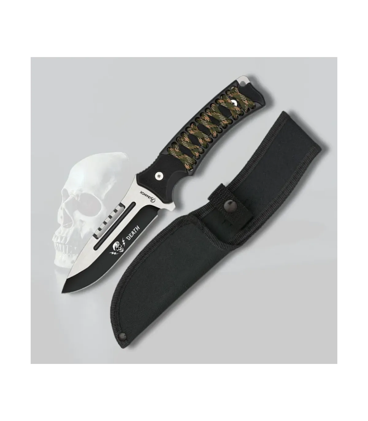 Además, la funda de nylon resistente no solo protege tu cuchillo, sino que también facilita su transporte, permitiéndote llevarlo a cualquier lugar sin preocupaciones. Con un diseño pensado para el aventurero moderno, este cuchillo es la herramienta ideal para quienes buscan calidad y estilo en cada detalle.