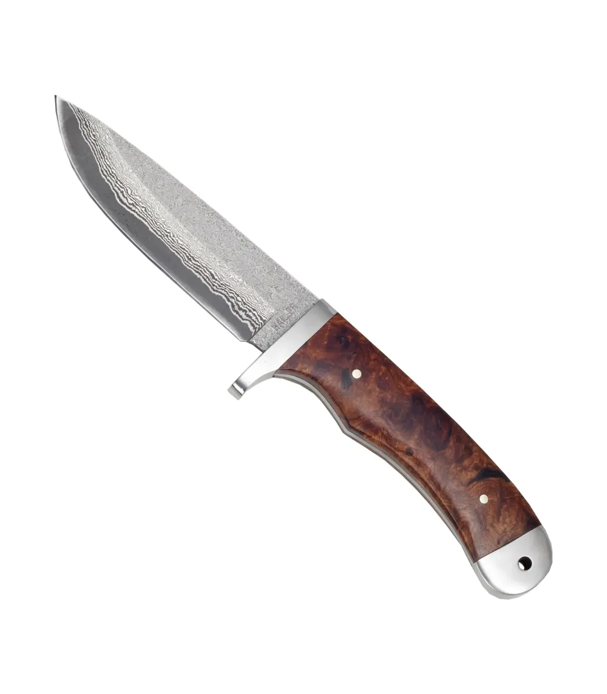 Cuchillo Damasco Madera Raíz Guardamano Inox