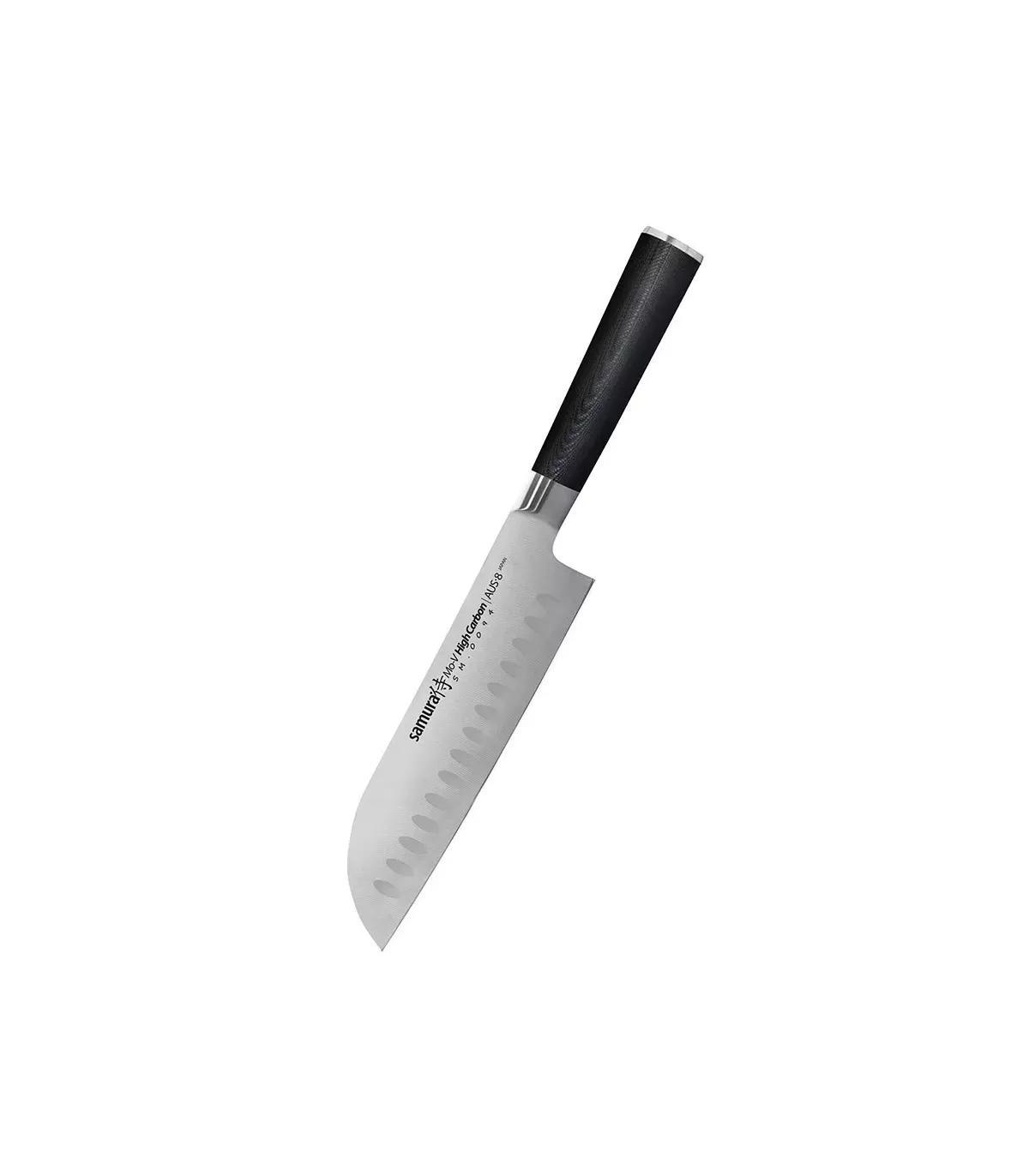 El cuchillo de cocina Santoku Samura modelo MO-V combina la artesanía tradicional japonesa con la calidad y la durabilidad del acero AUS-8. Su diseño ergonómico y su filo excepcional te permitirán disfrutar de una experiencia de corte precisa y eficiente en la cocina.