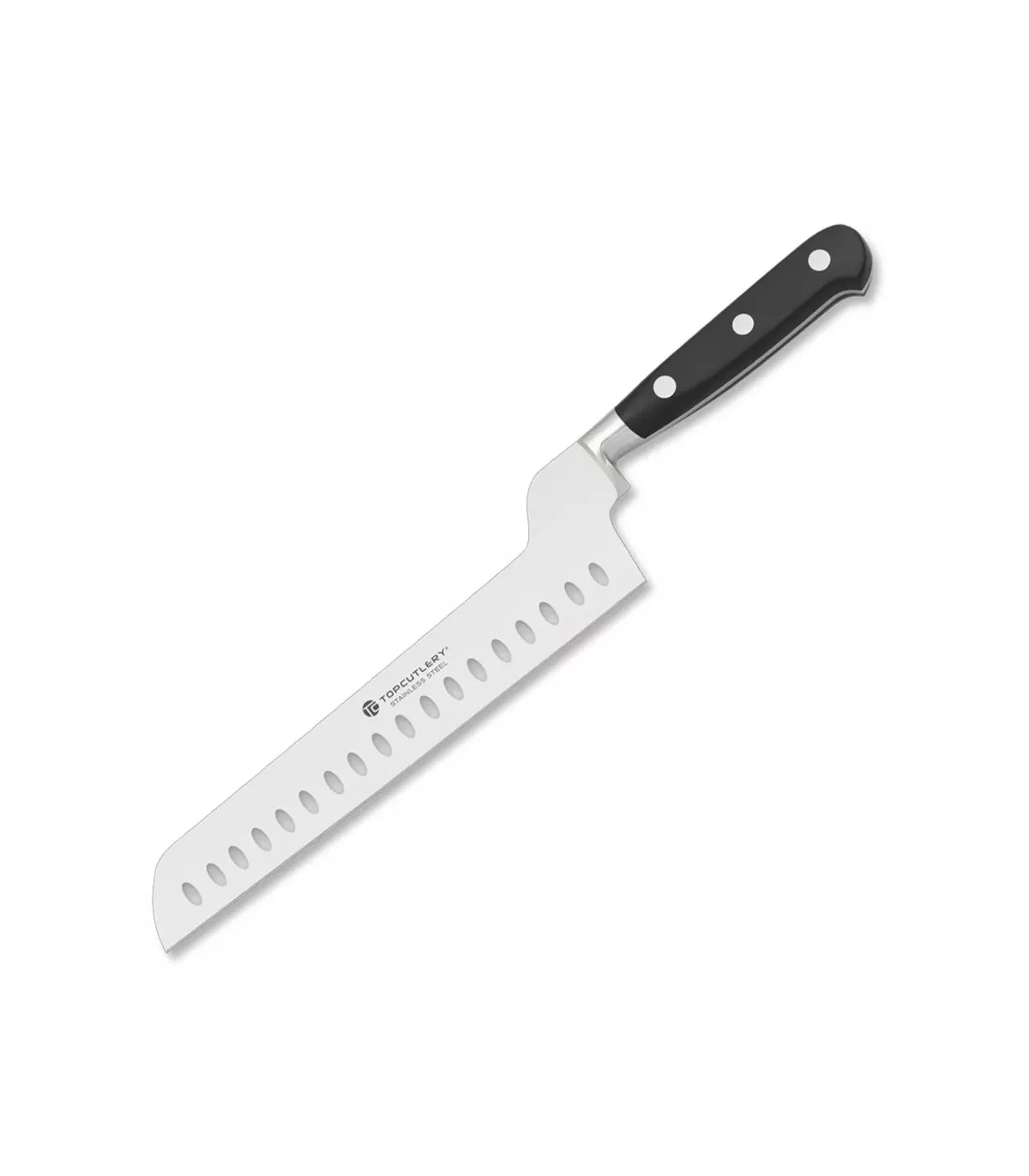 Este cuchillo ha sido diseñado pensando en los profesionales y los entusiastas del queso. Su hoja de acero inoxidable ofrece durabilidad y resistencia, mientras que el acabado satinado le brinda un aspecto elegante. Los alveolos en la hoja permiten un corte suave y sin esfuerzo, evitando que el queso se pegue al cuchillo y asegurando cada porción perfecta.