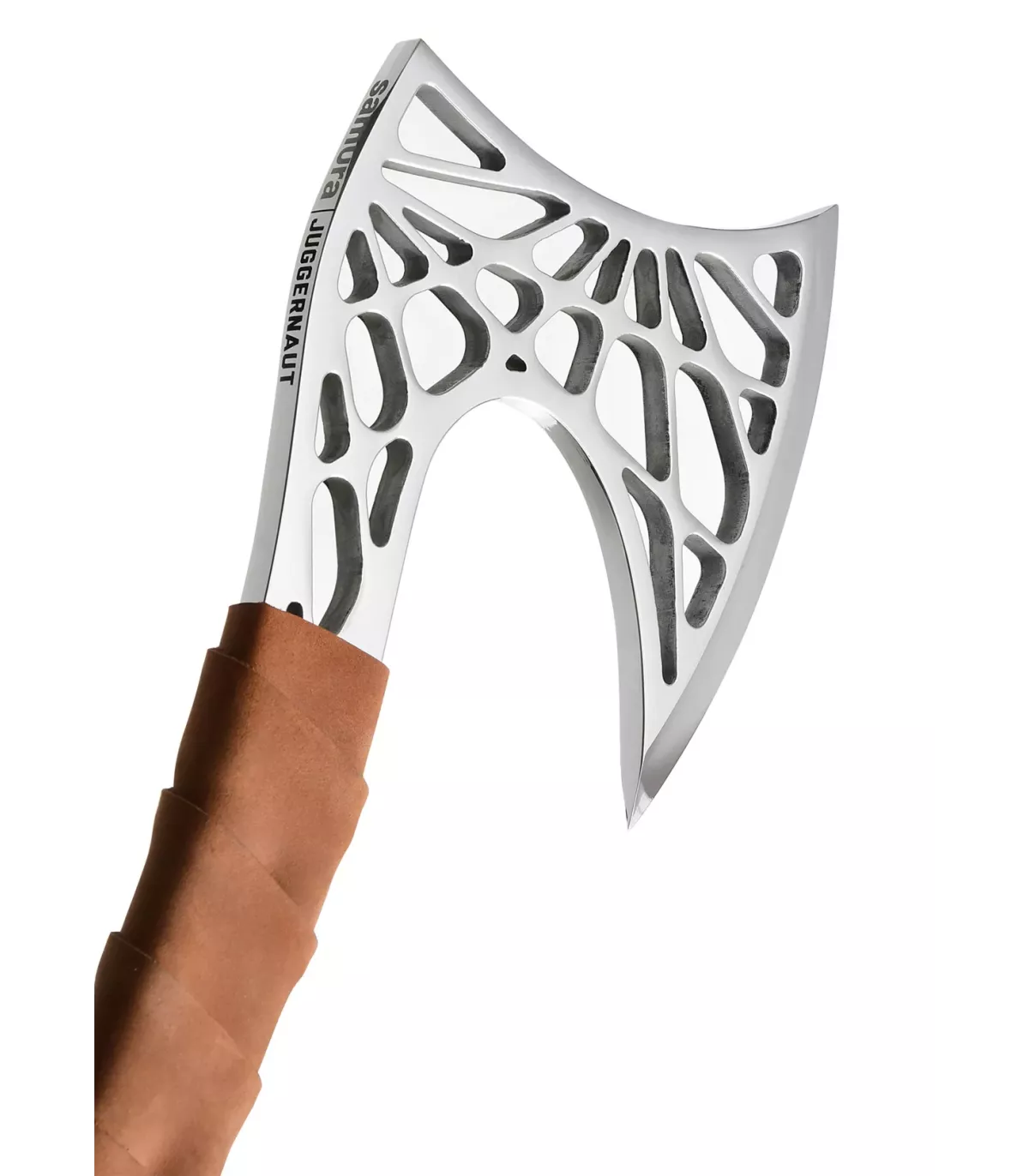 La Samura Juggernaut es mucho más que un hacha de cocina; es una herramienta de precisión diseñada para enfrentar los desafíos más exigentes en la preparación de alimentos. Fabricada completamente en acero Hardox Extreme 450, conocido por su durabilidad en aplicaciones industriales, esta hacha combina resistencia y ligereza gracias a su diseño geométrico abierto.