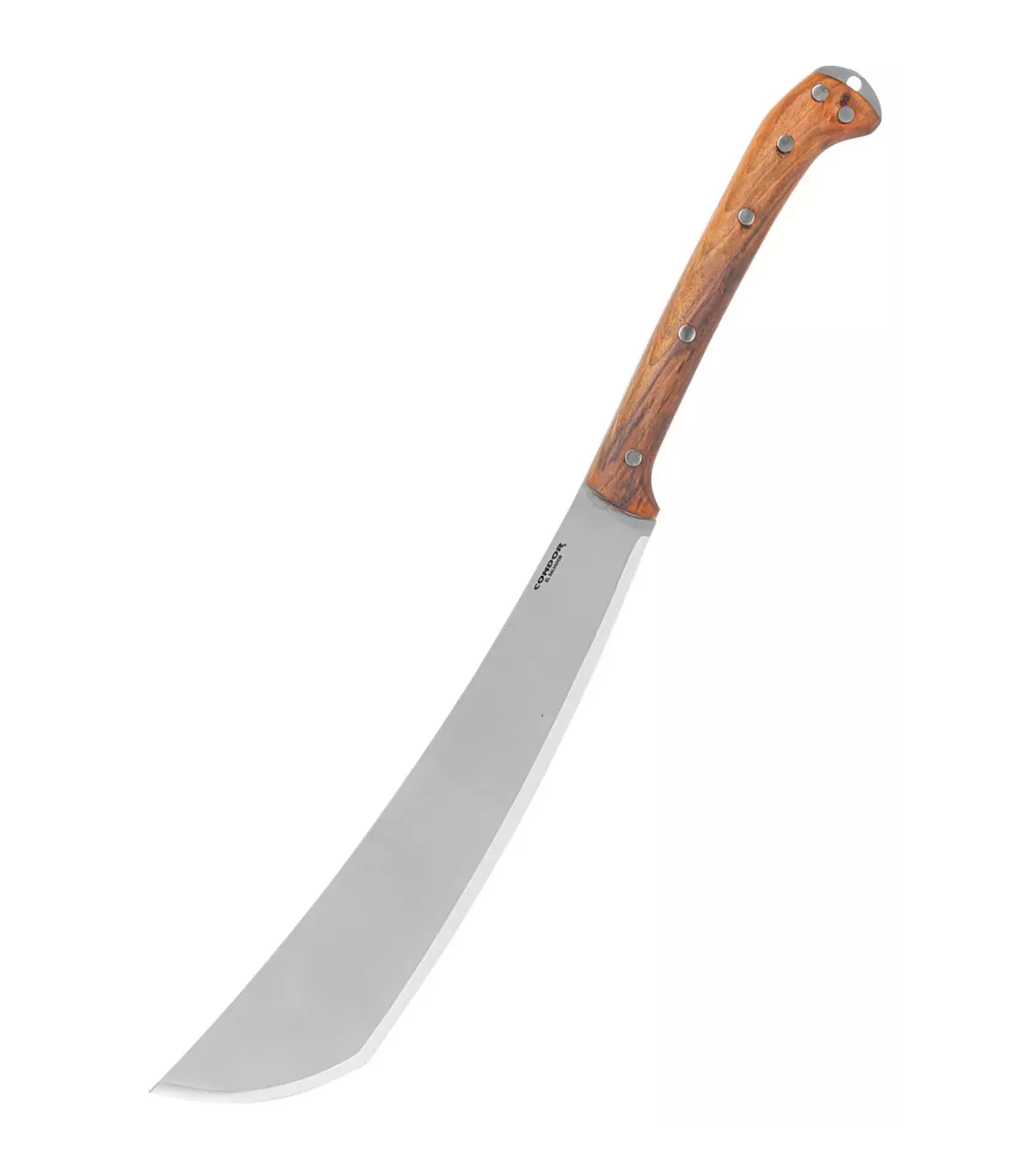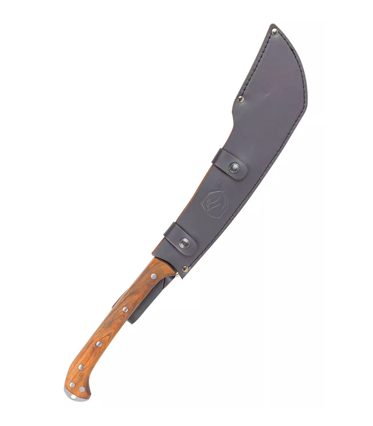 Con una longitud total de aproximadamente 58,57 cm y una longitud de hoja de aproximadamente 35,56 cm, el Mid-Makara Machete es fácil de llevar contigo a cualquier lugar. El mango de madera de nogal promete un agarre seguro y cómodo, mientras que los remaches decorativos añaden un toque de estilo a la herramienta.