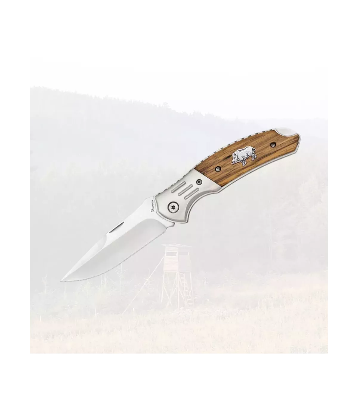 ¿Buscas una herramienta que combine estilo y funcionalidad en tus aventuras al aire libre? Esta navaja de campo decorada con un llamativo jabalí en el mango es justo lo que necesitas para destacar en cada ocasión.