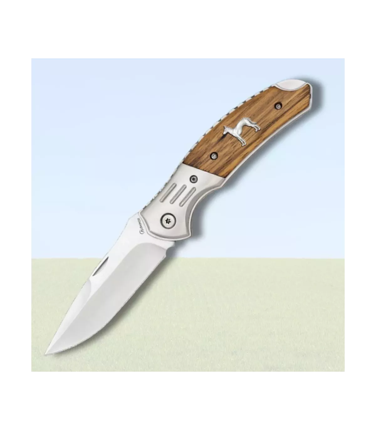 Su hoja de acero inoxidable, con un acabado brillante, no solo garantiza durabilidad, sino que también ofrece cortes precisos gracias a su diseño afilado. Cada vez que la utilices, sentirás la calidad de un producto pensado para los más exigentes. Además, su mango de madera Zebra, con un hermoso grabado de un podenco, no solo es estéticamente atractivo, sino que también proporciona un agarre cómodo y seguro, evitando deslizamientos indeseados.