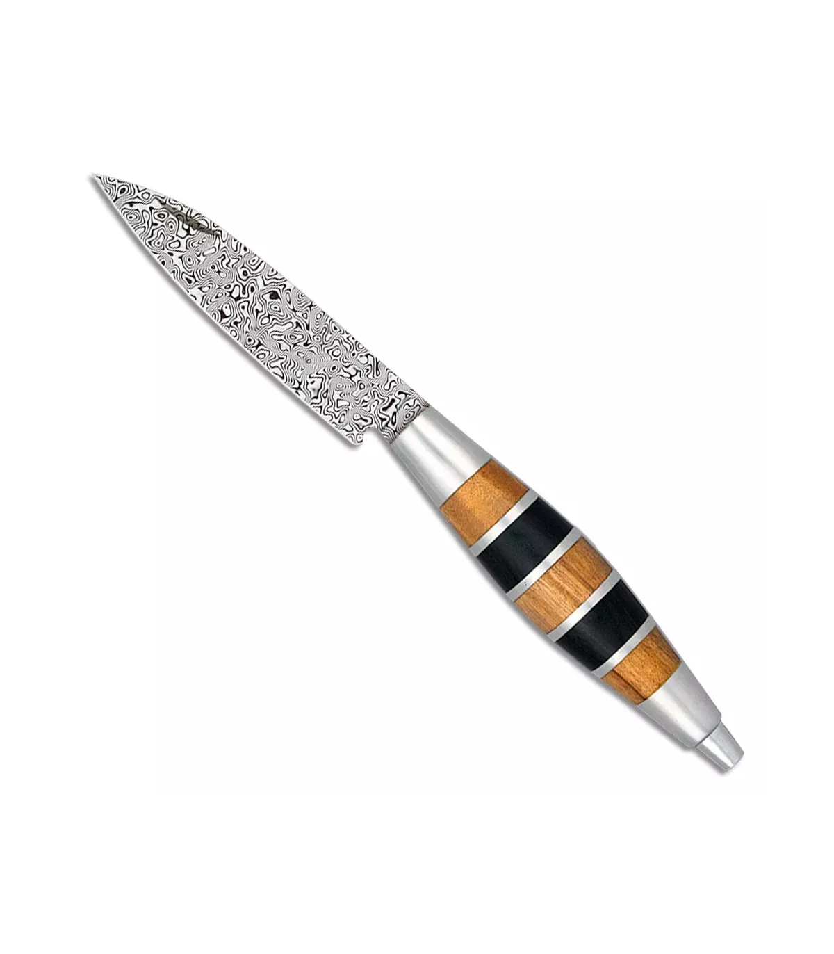 - Tipo de Acero Damasco 60 capas: La hoja de acero Damasco no solo es excepcionalmente duradera, sino que también ofrece un rendimiento de corte superior. Las 60 capas de acero crean un patrón único y hermoso, asegurando una navaja tan resistente como visualmente impactante.
