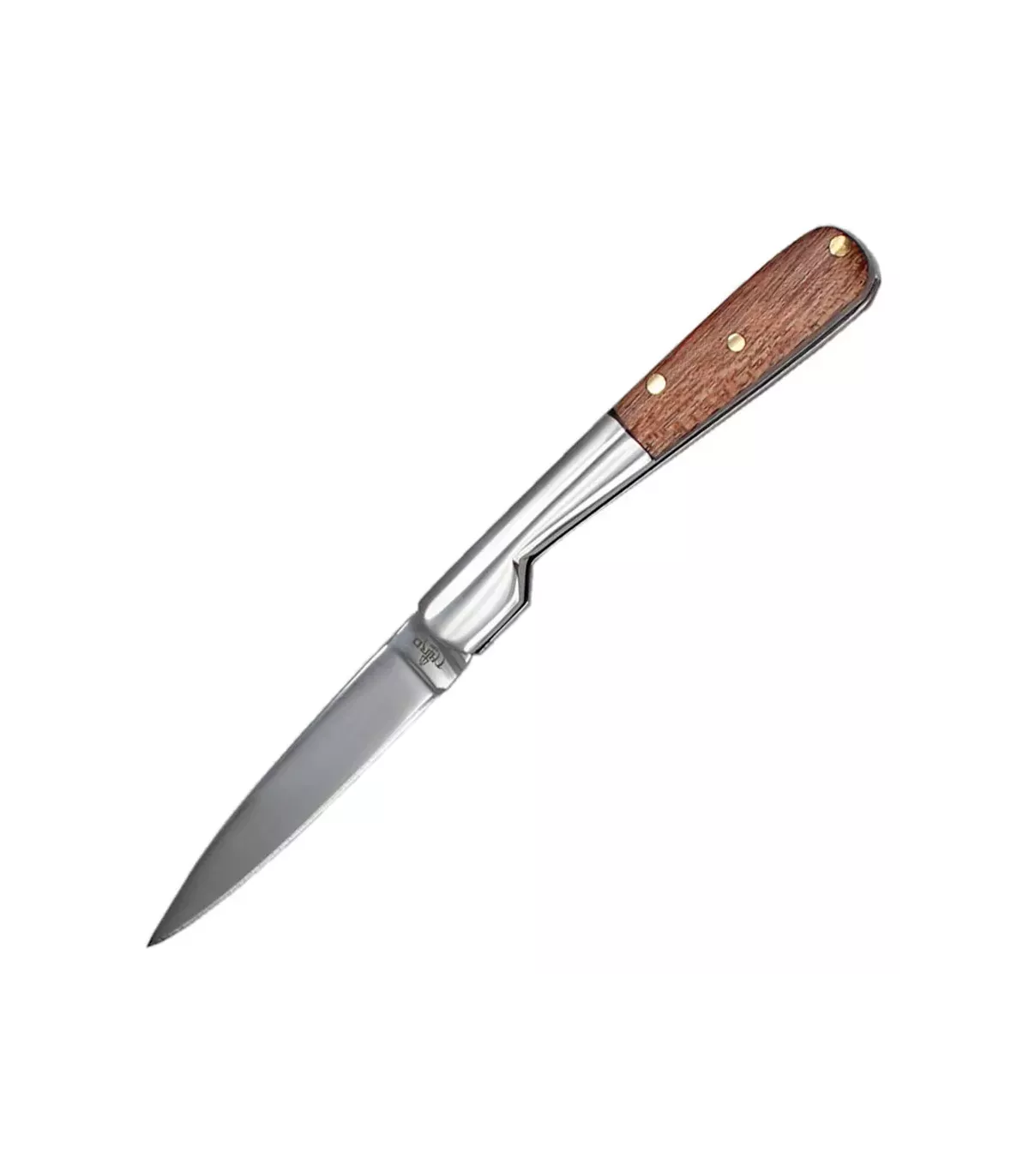 El sistema de cierre de pistón asegura un manejo seguro y sin complicaciones, mientras que el mango de madera de olivo, con una longitud de 7,5 cm, proporciona un agarre cómodo y ergonómico. La virola acabada en brillo espejo añade un toque de elegancia y sofisticación a la navaja.